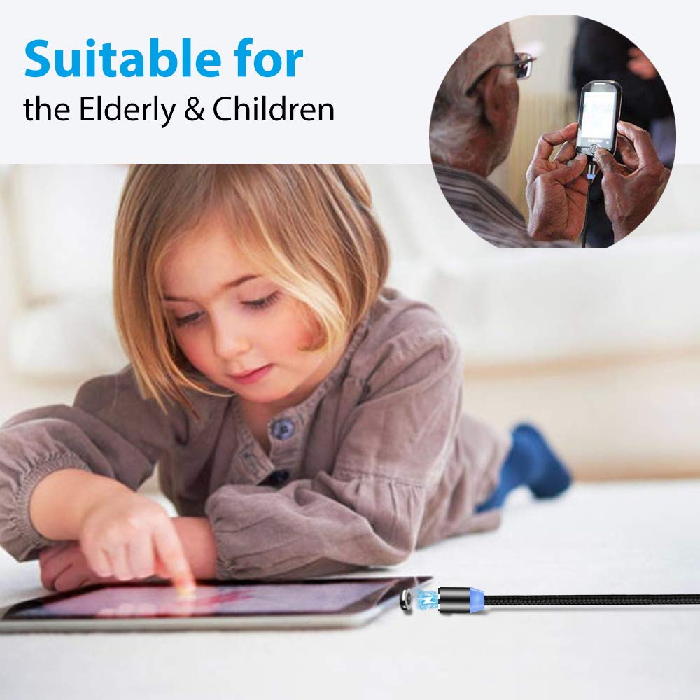 - 【360° ROTATION & LED LIGHT DESIGN】The magnetic charging head can be rotated 360°. LED lights are designed to help you find cables more easily in the dark. It best choice for drivers, vision impaired,child, elders and handicapped persons.