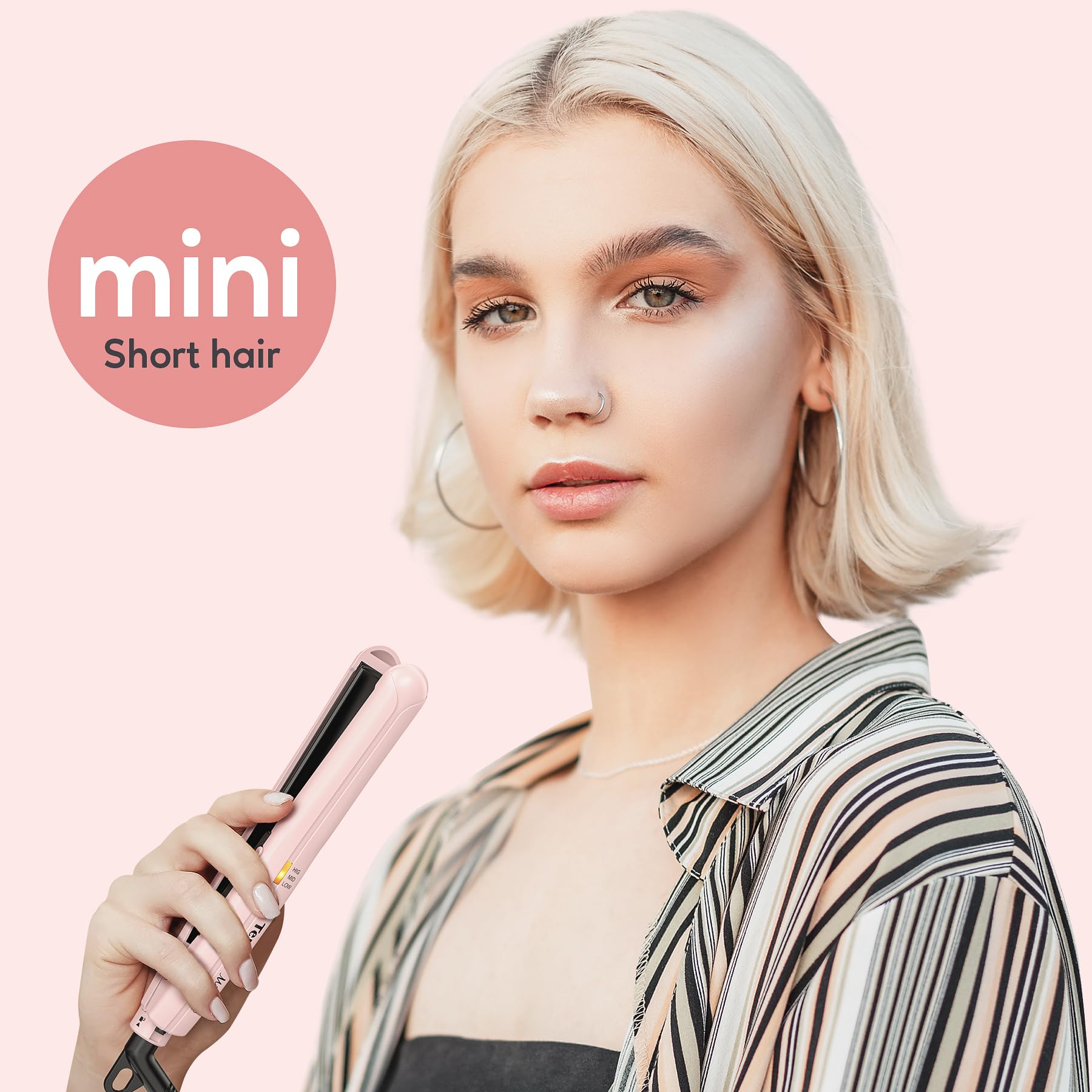Terviiix Mini Flat Iron Hair Straightener, Adjustable Temperature, Travel-Size, 1/2" Ceramic Plates, Dual Voltage, Auto-Off, Pink