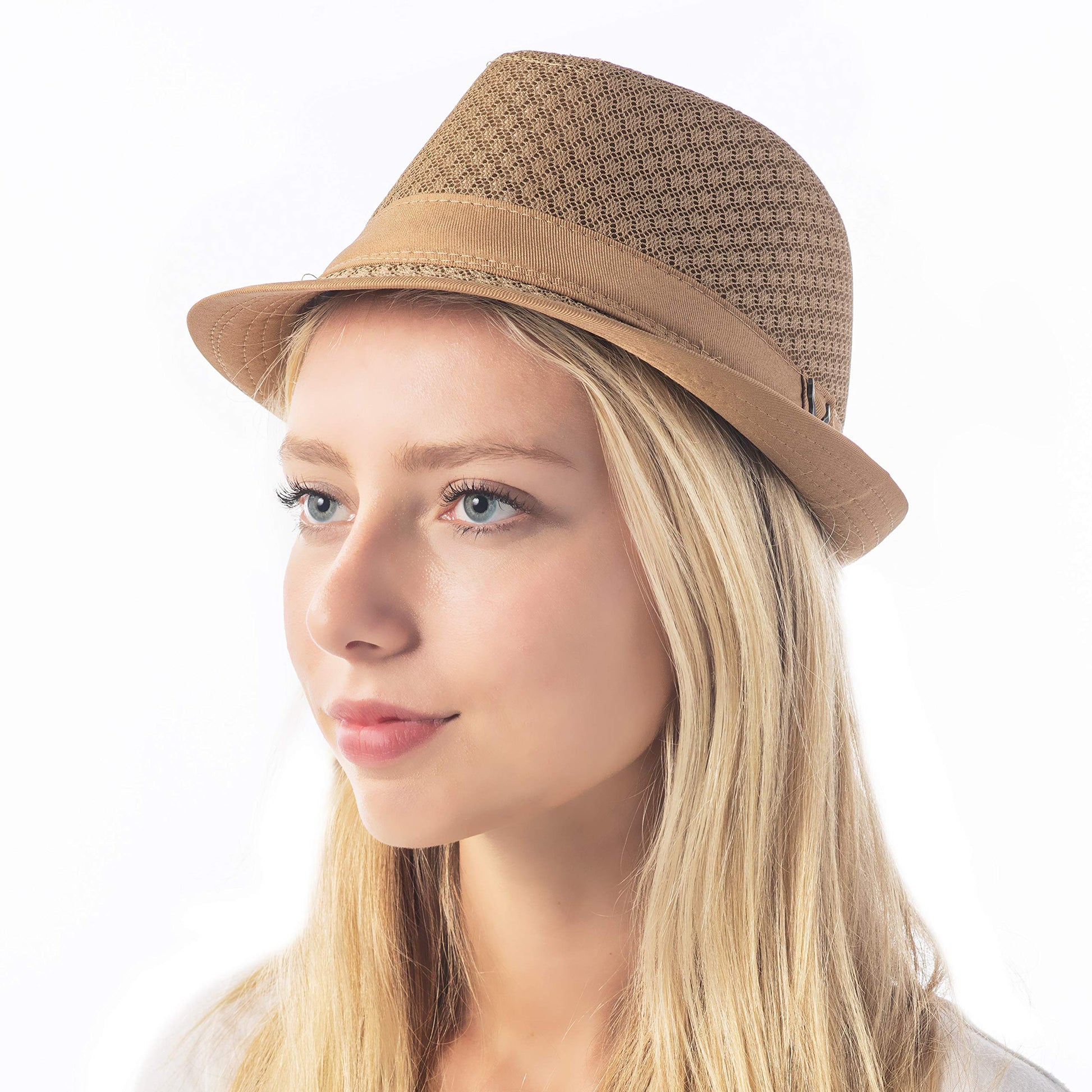 The Hat Depot Light Weight Classic Soft Cool Mesh Crushable Fedora hat (S/M, Khaki)