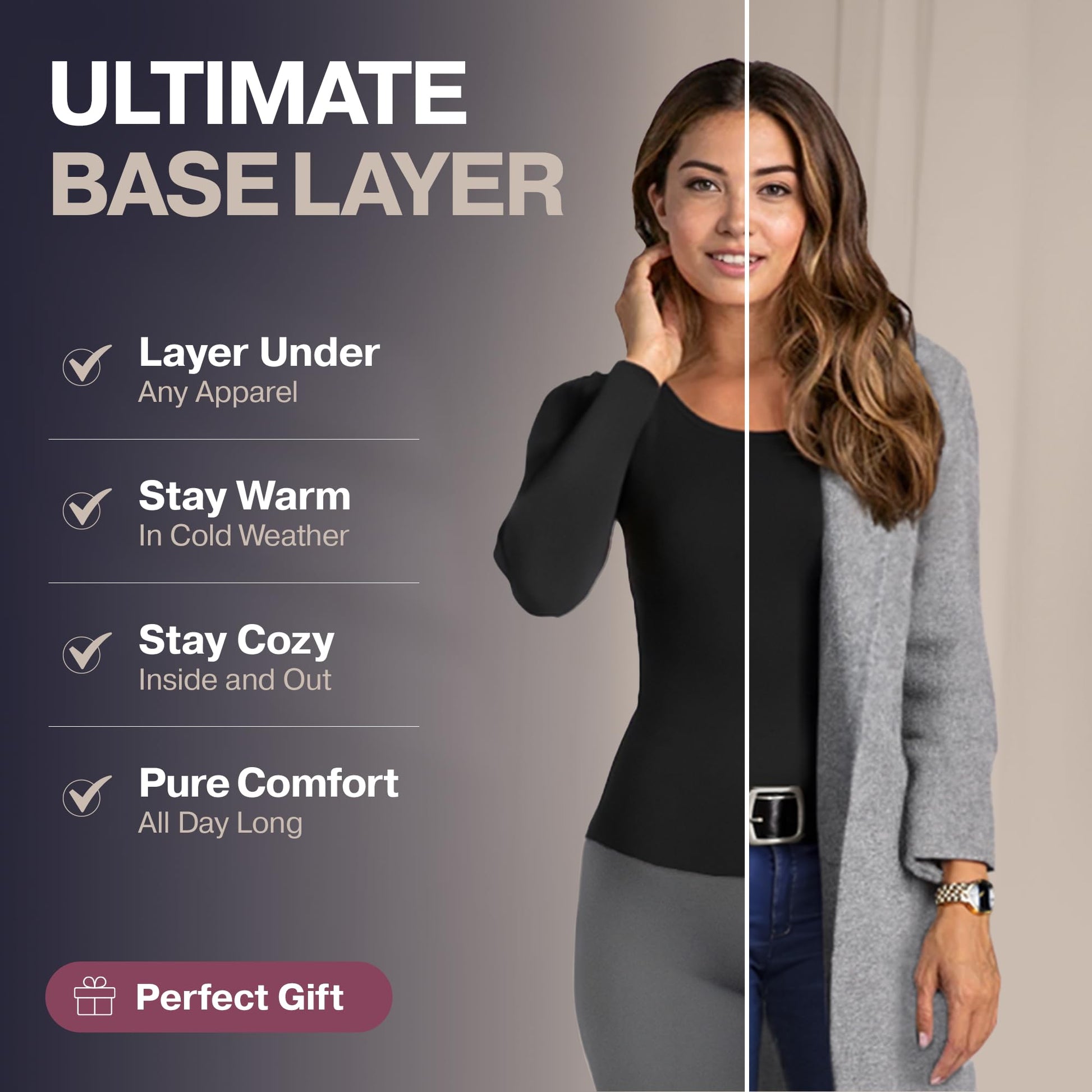 Our scoop neck women's thermals are the perfect clothing for this cold season. The thermal long sleeve shirt is the ideal choice for ultimate comfort and style. Thermal for women are designed for maximum durability, support, and versatility. Even if you're heading out on a run to pursue your healthy lifestyle or a trip to the store, these scoop neck thermals are perfect for your lifestyle.