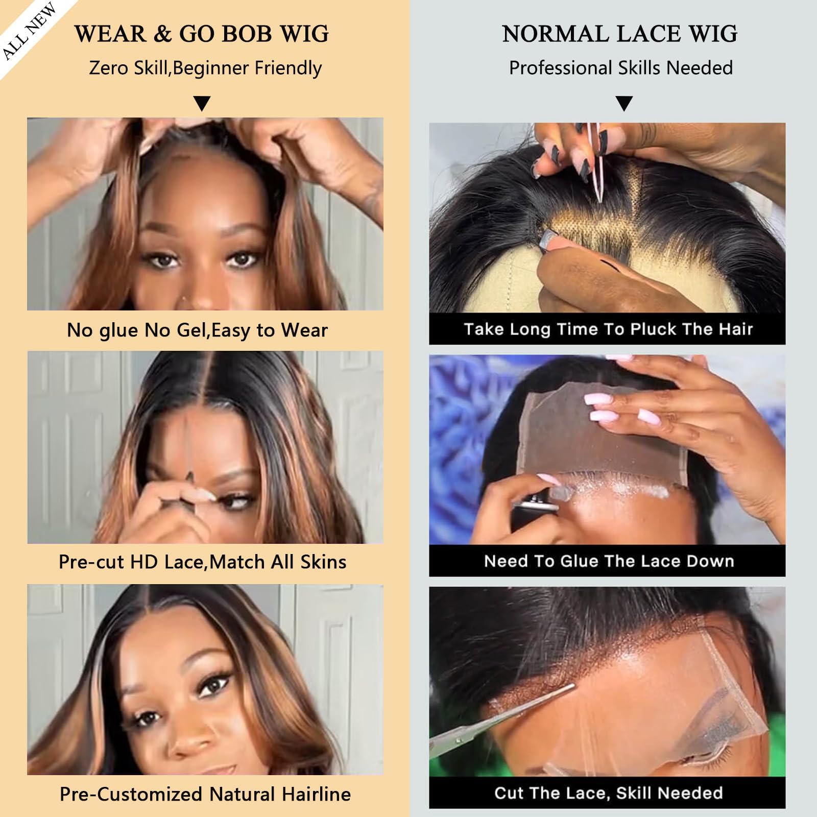 - 💝Bob wig human hair : Our Highlight wig human hair materials are all sourced from young and healthy girls, without mixing any animal hair or synthetic hair. You can rest assured to test them. Not mixed with ground hair (ground hair refers to the scattered hair that falls to the ground when the wig is made and taken care of before leaving the factory).It is softer, and has a longer service life, less shedding and no tangle wig no chemical process, ensuring durability and quality.