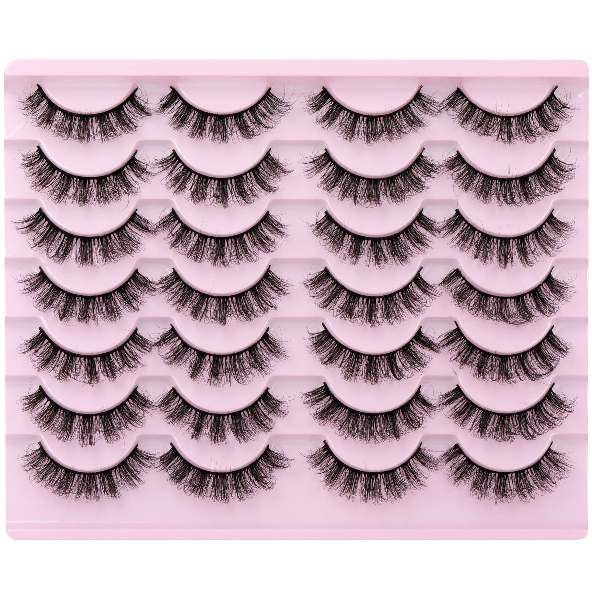 TNFVLONEINS False Eyelashes Fluffy Mink Lashes 14 Pairs D Curl Russian Strip Lashes Natural Look 18mm Wispy Lashes That Look Like Extensions Fake Lashes Pack