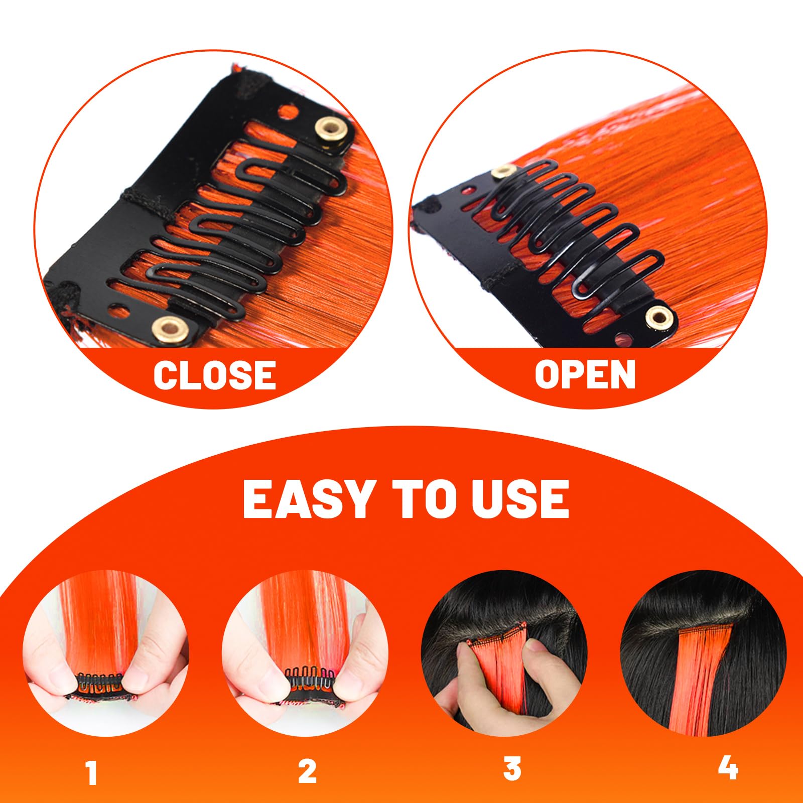 TOFAFA 22 inch Colored Hair Extensions, Multi-colors Party Highlights Clip in Synthetic Hairpiece for Halloween Girl Women Kids Party Gift(10 PCS Orange)