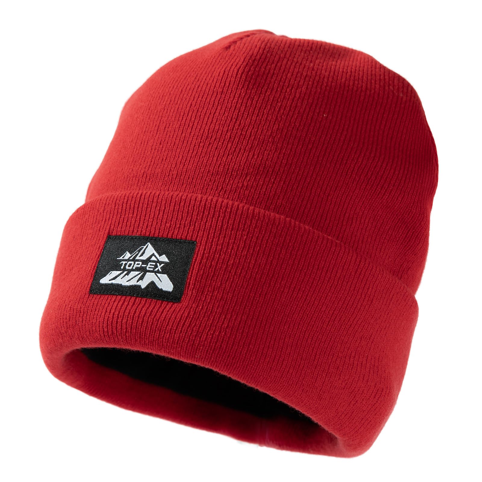 TOP-EX XXL 100% Merino Wool Beanie Hats for Men Women Winter Warm Polar Fleece Lined Beanies for Cold Weather Ski Running Hunting Walking Red XL/XXL