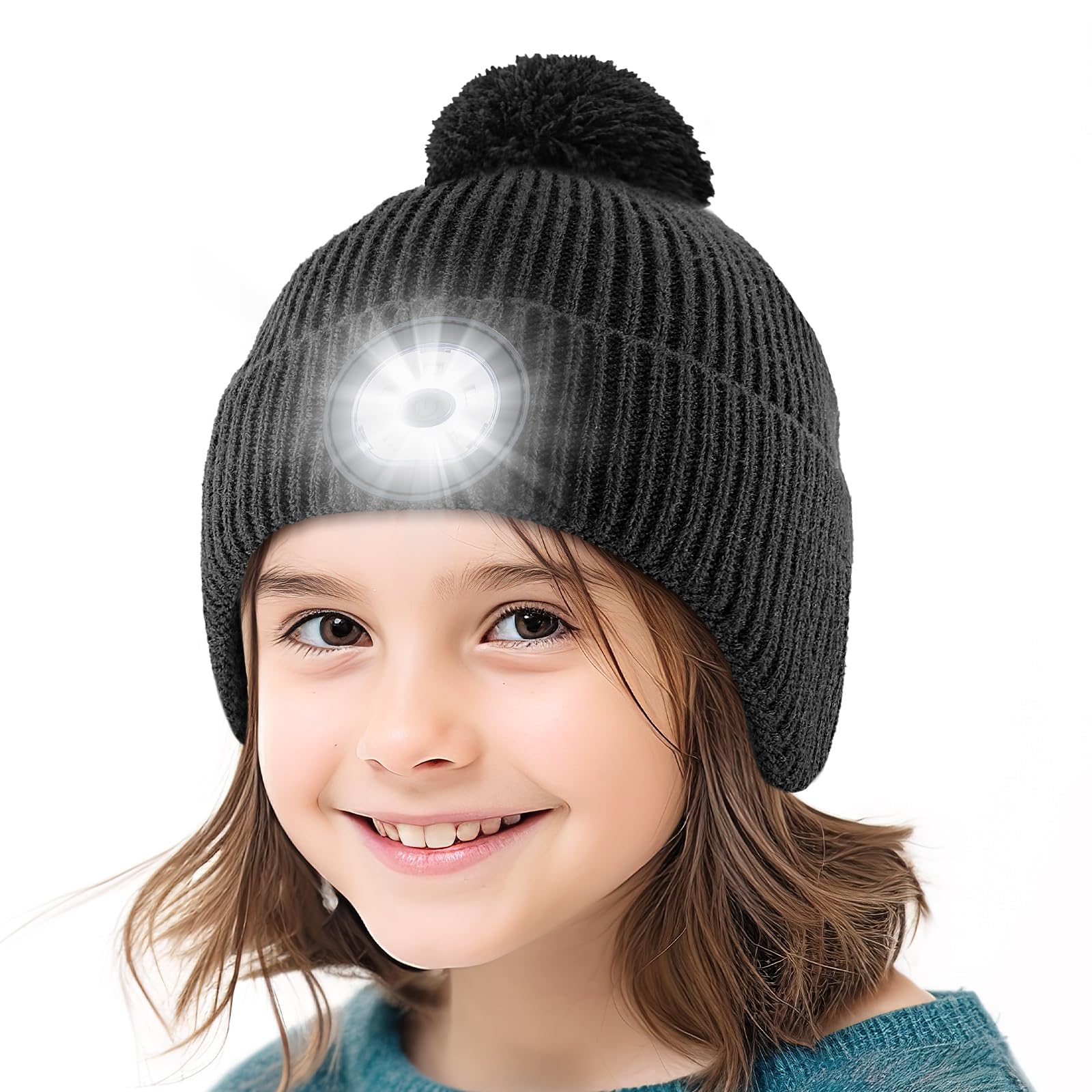 TOUCH TWO Beanie Hat with Light & Ear Flaps, USB Rechargeable LED Headlamp Cap-Winter Hat Birthday Tech Gifts for Boys Girls