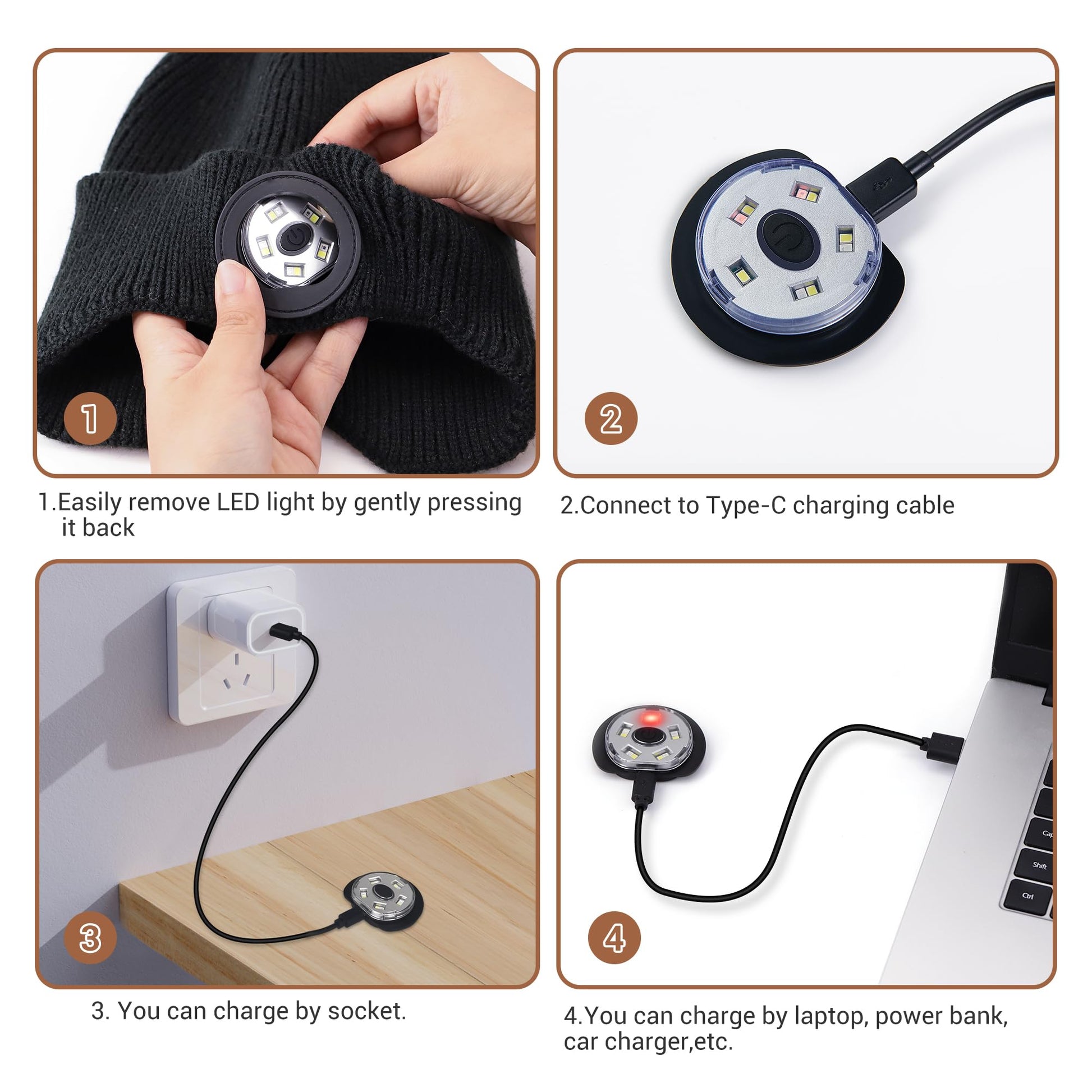 - 【Perfect Stocking Stuffers Christmas Gifts】LED Beanie hat is a functional and stylish gift for men, kids as well as women, it is the must have headlamp hat in the dark and cold days. Winter comes, prepare an ideal gift for your family members, Men Him Dad and anyone you love.