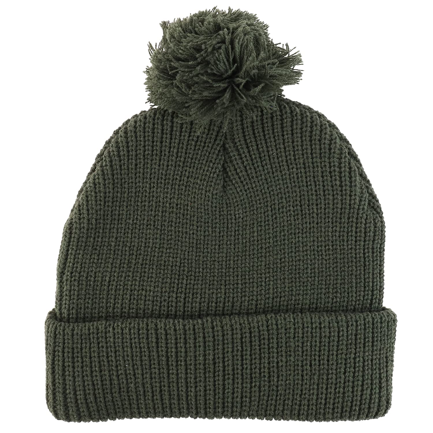Trendy Apparel Shop XXL Oversized Solid Pom Pom Winter Ribbed Cuffed Beanie - Olive - 2XL