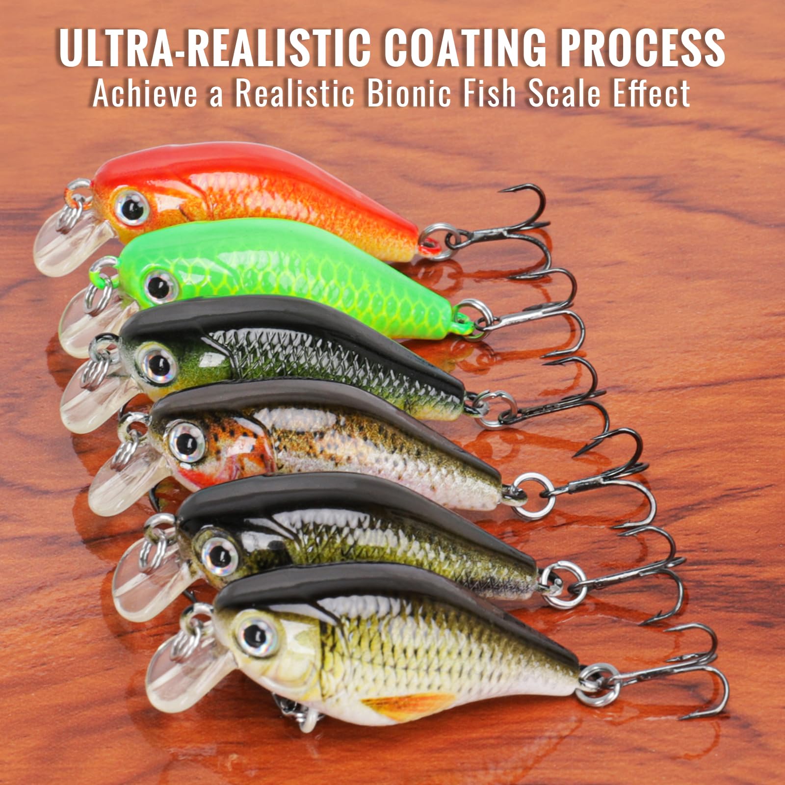 - Premium Materials: The body of bass lure is made of high strength ABS, maintaining the durability of fishing lures and making crankbaits pass through many obstacles with higher efficiency. Premium coating process and concave scale design make the lure look more realistic. The Topwater Crankbaits are unmatched in durability and quality.
