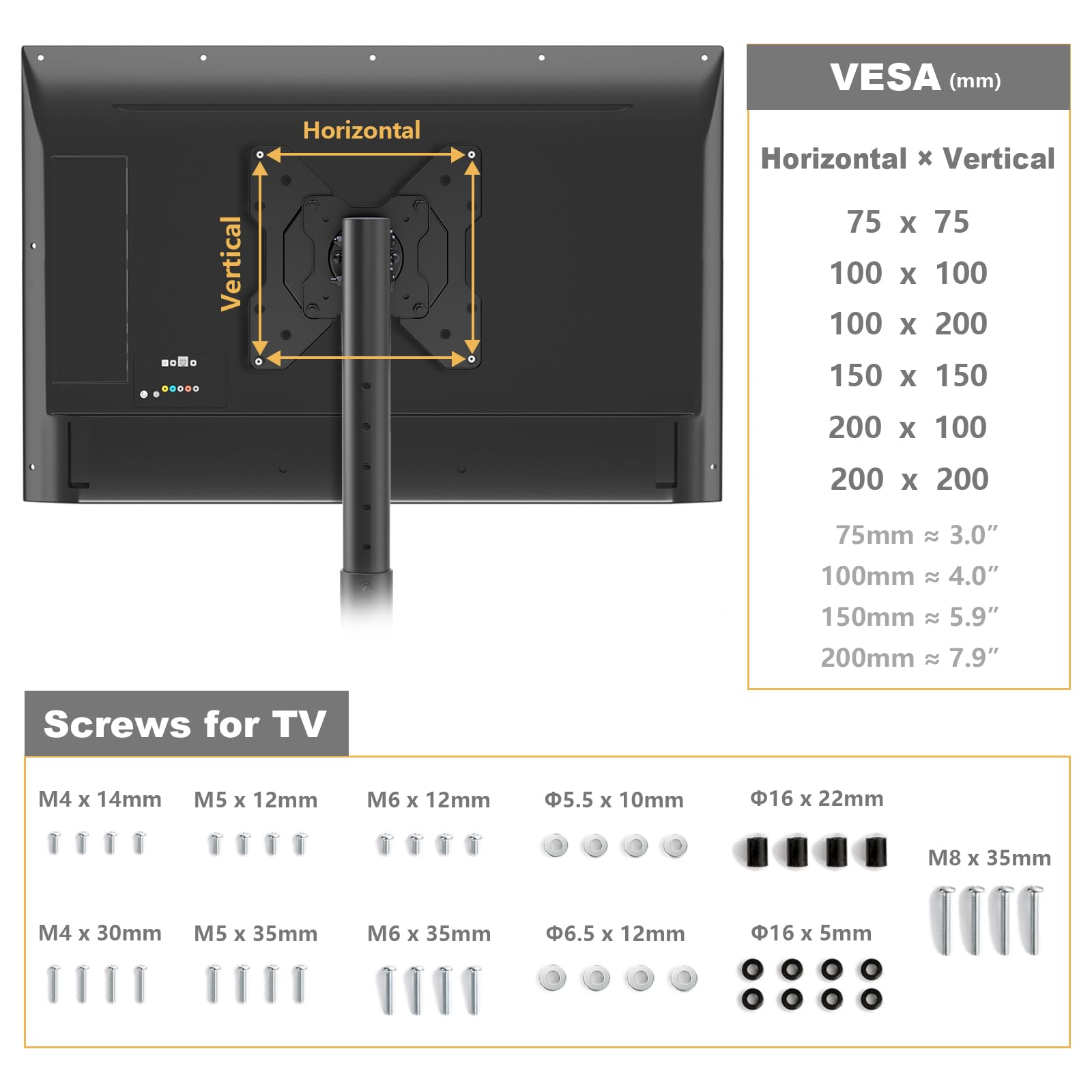 - Wide TV Compatibility: Our tv mount stand fits most 13-50 inch flat/curved screens and monitors brands like Samsung, LG, TCL, Sony, Vizio, etc. The outdoor tv stand holds up to 44 lbs with VESA patterns 75x75mm to 200x200mm.