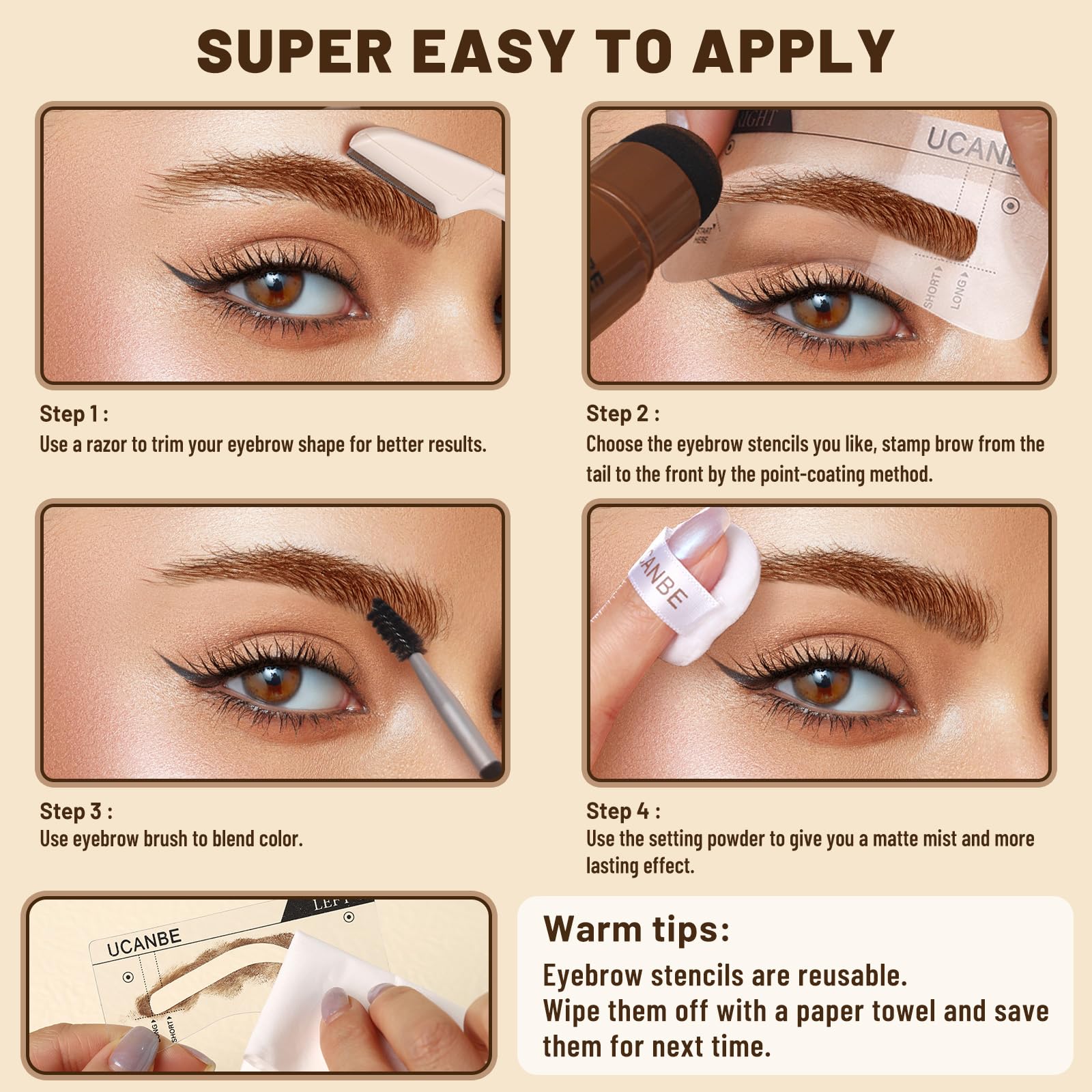 - For Thin & Thick Eyebrows: Well-chosen 10 pairs reusable eyebrow stencils follow the golden ratio principle to provide a range of shapes that perfectly fit all types of eyebrows. Whether you're looking for a natural or a bold eyebrow makeup look, UCANBE brow stamp kit has you covered!