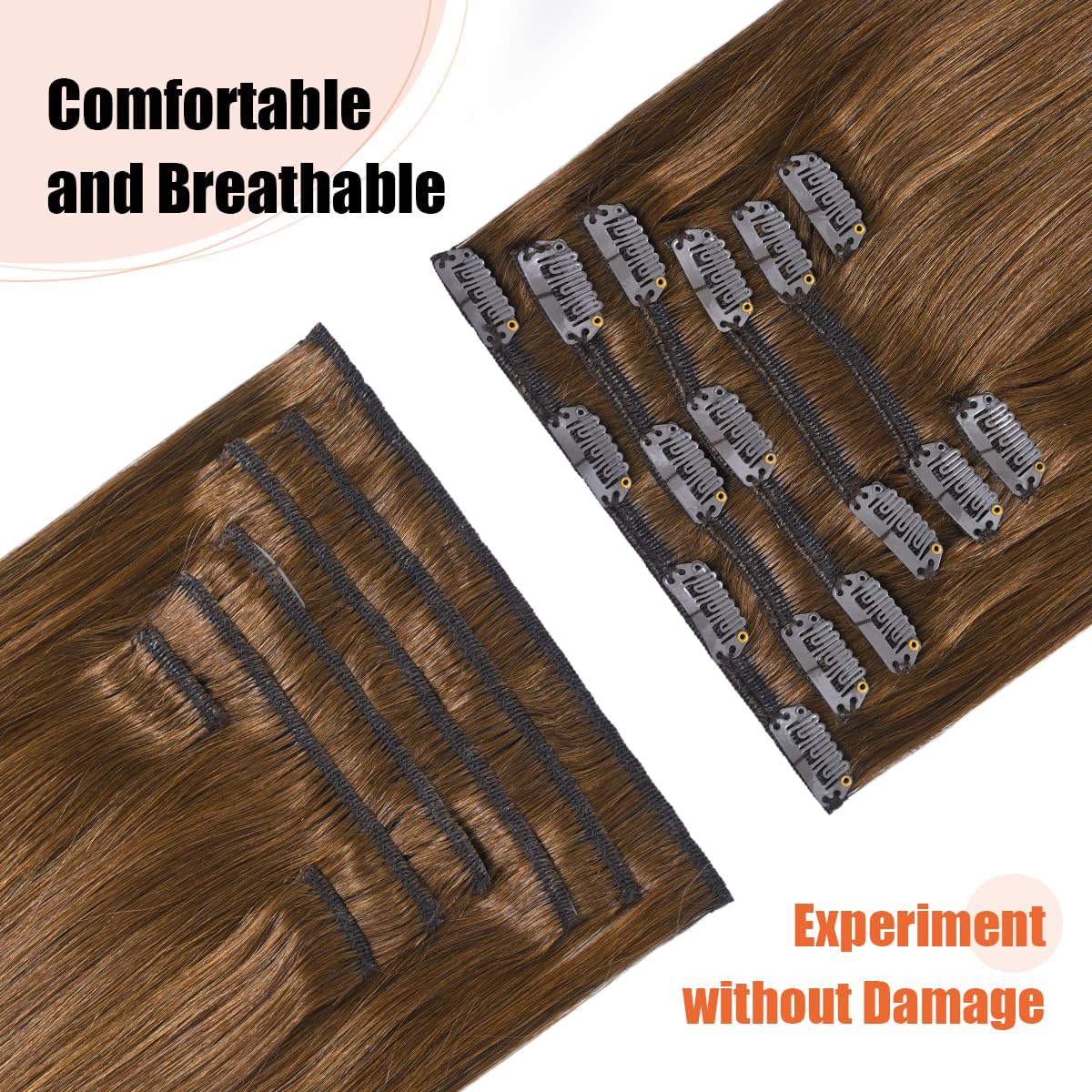 - Chestnut Brown Hair Extensions Material Quality: 8A grade human hair, 100% real human extensions, no tangling, no shedding. silicon-backed clips are strong, hidden & lightweight, protect your natural hair,ensure your hair sits naturally