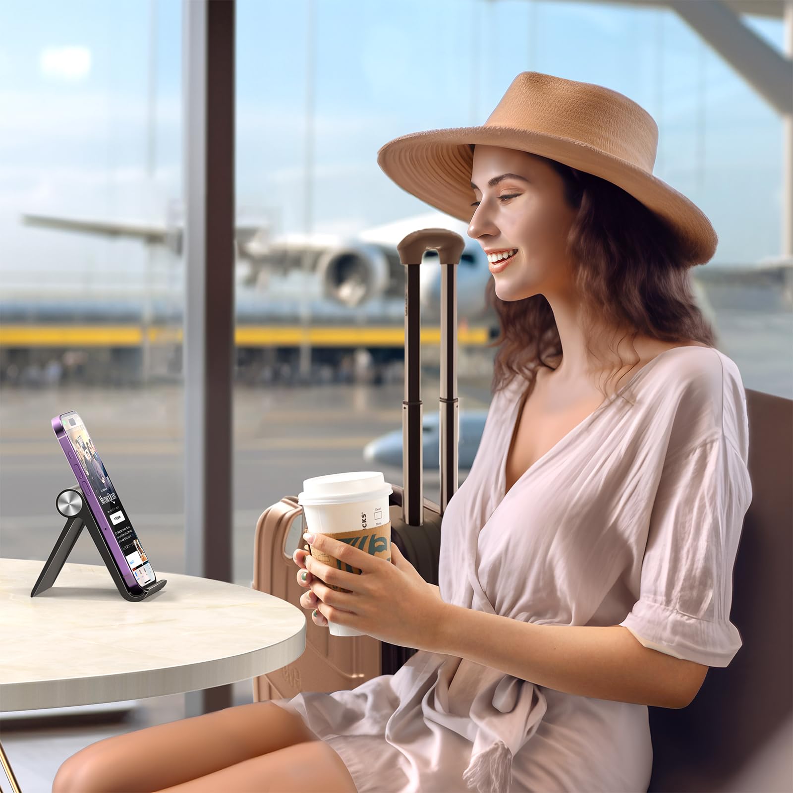 - Portable and convenient: The cell phone stand holder is portable and fully foldable. The folding phone desk stand holds your phone excellently no matter you place it on home desktop, kitchen table, counter, office desk or even the flight. Easy to fold, a perfect travel companion