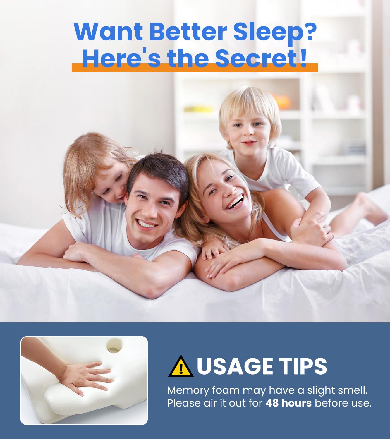 - NO-WORRY AFTER-SALE SUPPORT, YOUR SATISFACTION GUARANTEED! - we are dedicated to delivering top-notch products that enhance your shopping journey. To exemplify our commitment, we proudly offer you a risk-free 100-night trial period for this remarkable contour pillow. Moreover, it doubles as an excellent gift for your parents, friends, long-term usage will greatly improve the quality of sleep. Note: Memory foam may have a slight odor, please air it out for 48 hours before use!
