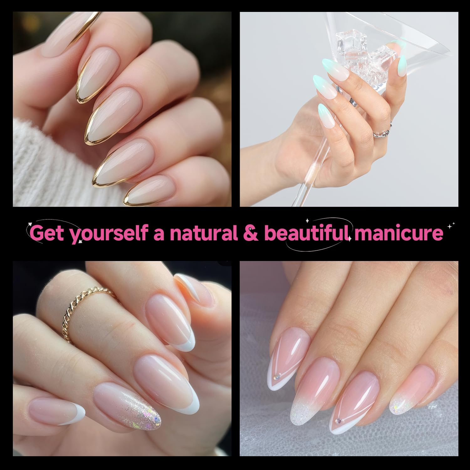 - ❤️【Natural Fit Effect】 The almond gel nail tips feature “ Thin back edge, thick front edge”. The thinner back edge can make the full cover nail tips fit your nails better. Our tips have smooth edges with a gentler curve, making them fit comfortably against the nail bed without feeling tight. They maintain color well, don’t separate or peel, and make the nails look more natural.