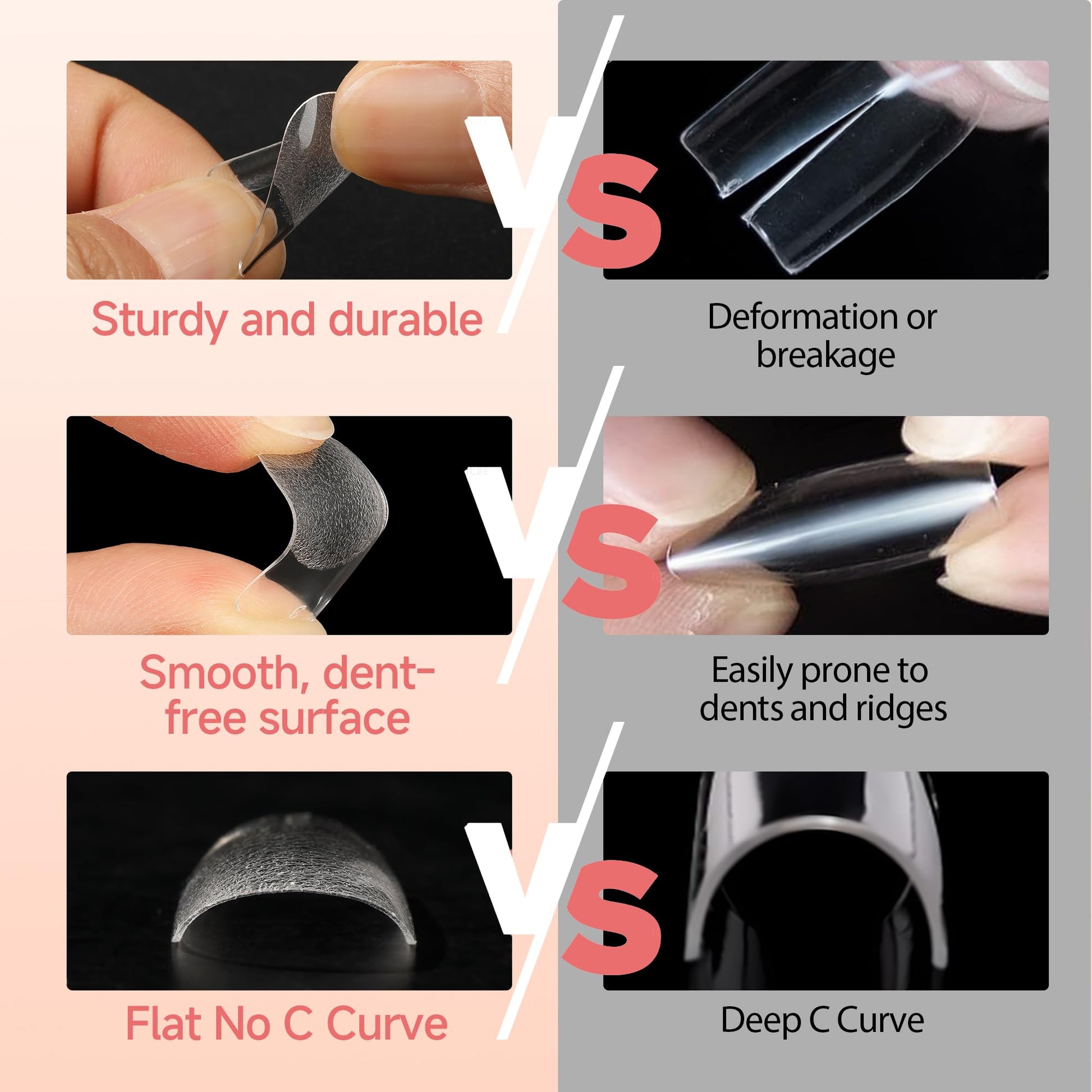 - ❤️ No Trace square nails: These short square gel nails are made from healthy, gel-like soft materials that are breathable and harmless. Even when bent, they leave no marks. These nails tips are bright, clear, soft, and flexible. Easy to file, trim, and apply, allowing you to shape your nails the way you like.