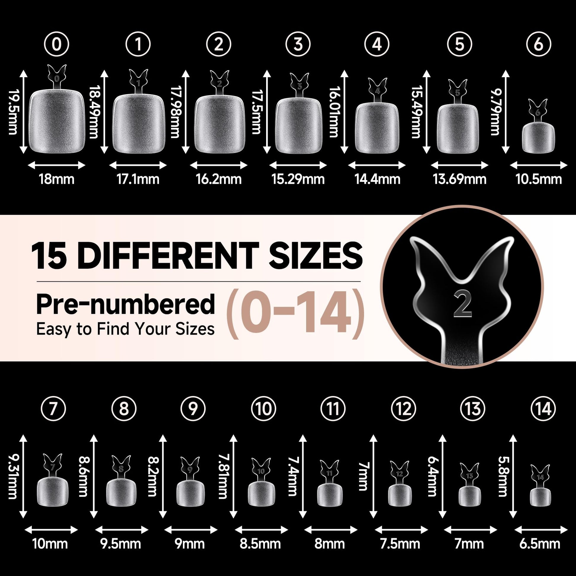 - ❤ 15 Size Options: Our toe gel nails come in 15 sizes with extended length and wider width, featuring a pre-shaped square round style. Additionally, 5 sizes are specifically designed for larger toenails, making them suitable for most foot shapes, especially wider toenails—even men can use them. Whether your nail beds are wide, regular, or narrow, our acrylic toenails will fit your needs perfectly