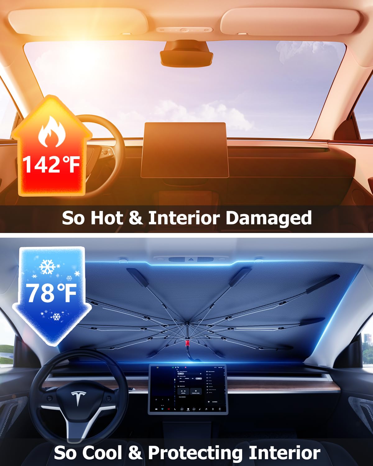 - [Universal Compatibility] - Wider compatibility. Compatible with sedans, SUVs, MPVs, trucks & passenger cars. Featuring 10 high-strength and strong-toughness ribs, achieving 95-120% coverage. Even if your car is slightly larger, it can still be used normally, making this umbrella car shade fit for 93% car models and sizes.