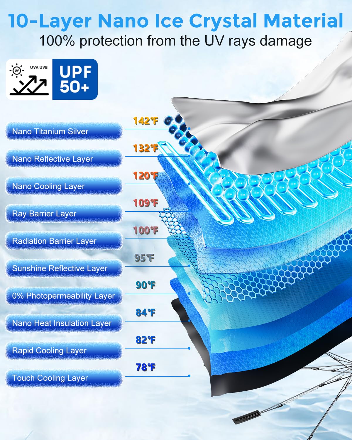 - [New Cooling Coating] - Adopts the new generation of innovative cooling coating technology with excellent sunshade protection ability. This advanced nanotechnology not only effectively blocks ultraviolet rays, but also efficiently keep your car cooler. Giving a comfortable driving emvironment for you.