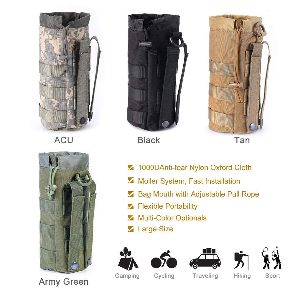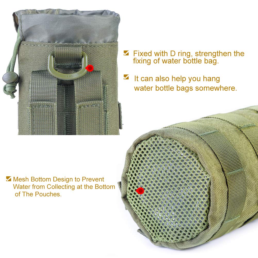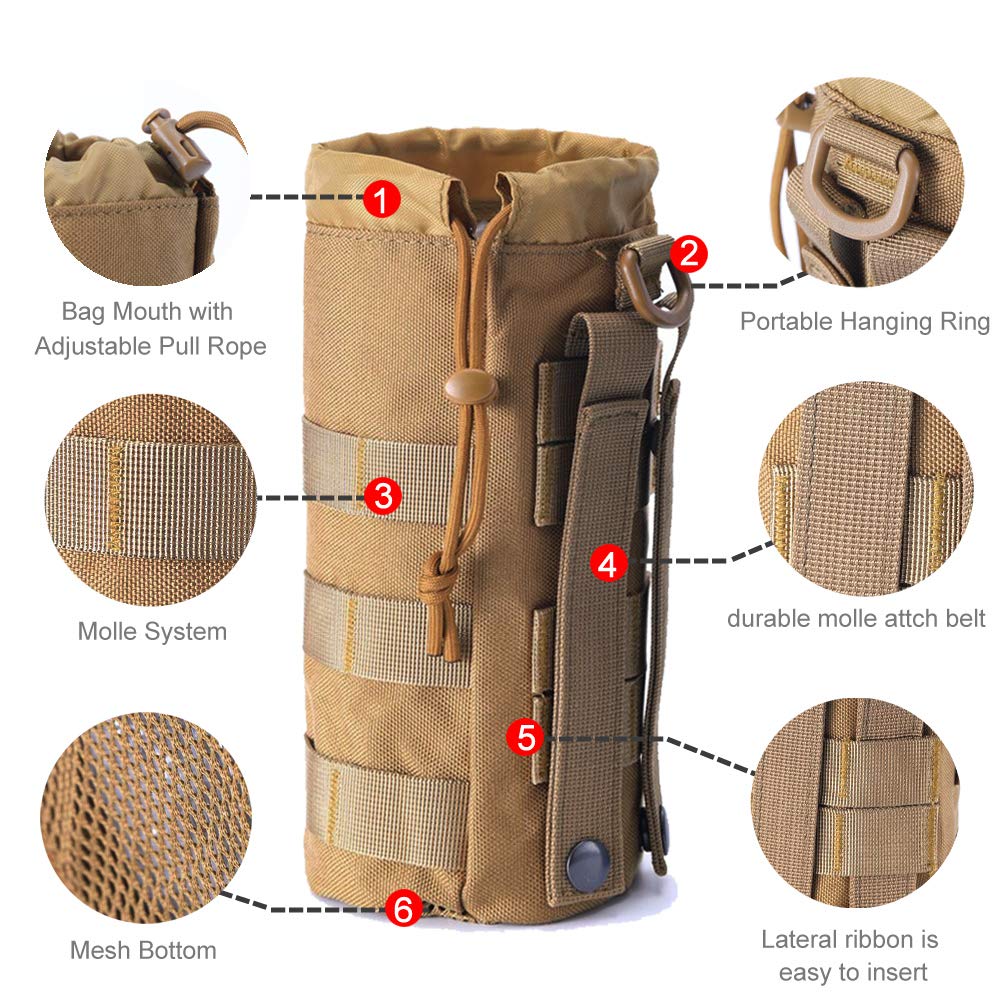Details: Product Name:Upgraded Tactical mollie water bottle pouches, tactical water bottle pouch, Travel Mesh Water Bottle Bag Tactical Hydration Carrier, Tactical Outdoor Sport millitary Water Bottles Pouch Bag