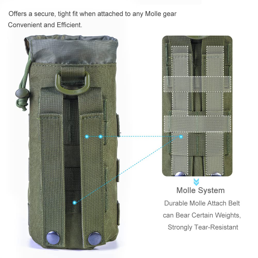 Upgraded Tactical Drawstring Molle Water Bottle Holder Tactical Pouches (Army Green)