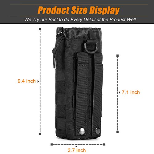Details: Tactical Mollee Water Bottle Pouch Fits most Standard Size Water Bottles. Diameter:3.55inch; High:9.45inch.Good Size for Carrying 0.5 Liter Smartwater. Mesh Bottom Design to Prevent Water from Collecting at the Bottom of The Pouches.