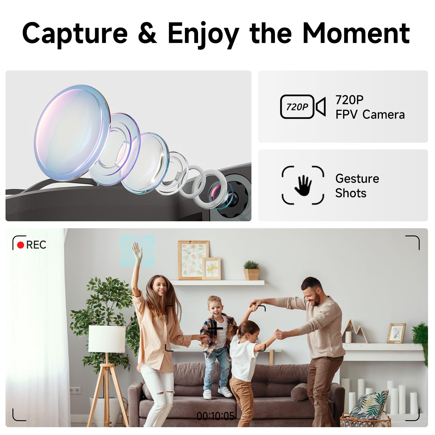 - HD CAMERA & FPV WIFI REAL-TIME TRANSMISSION: The M10C Mini Drone with camera is equipped with a 720P HD Wi-Fi camera, ideal for capturing clear photos and videos. With FPV real-time transmission, you can view live footage on the app and share your favorite moments on social media. Enjoy the convenience of capturing photos and videos with the press of a button for a smooth experience