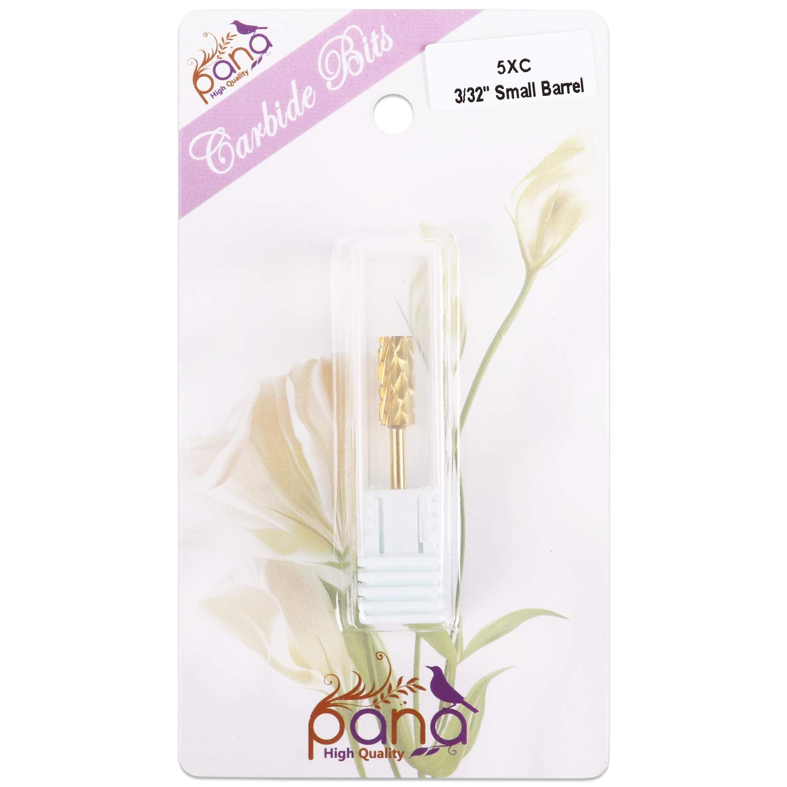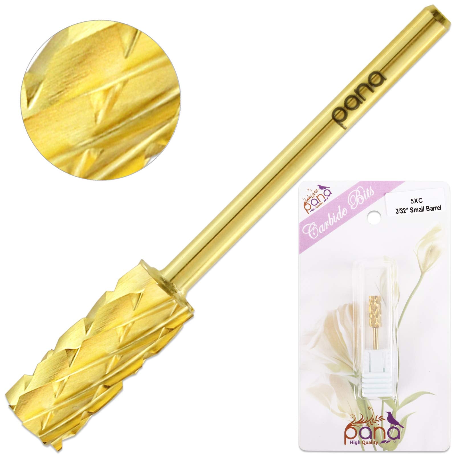 USA PANA Professional 3/32" Shank Size - Flat Top Small Barrel Carbide Bit - 5X Coarse Grit to Extra Fine Grit - Gold, Silver, DLC Black - Nail Drill Bit for Dremel Machine (5X Coarse, Gold)