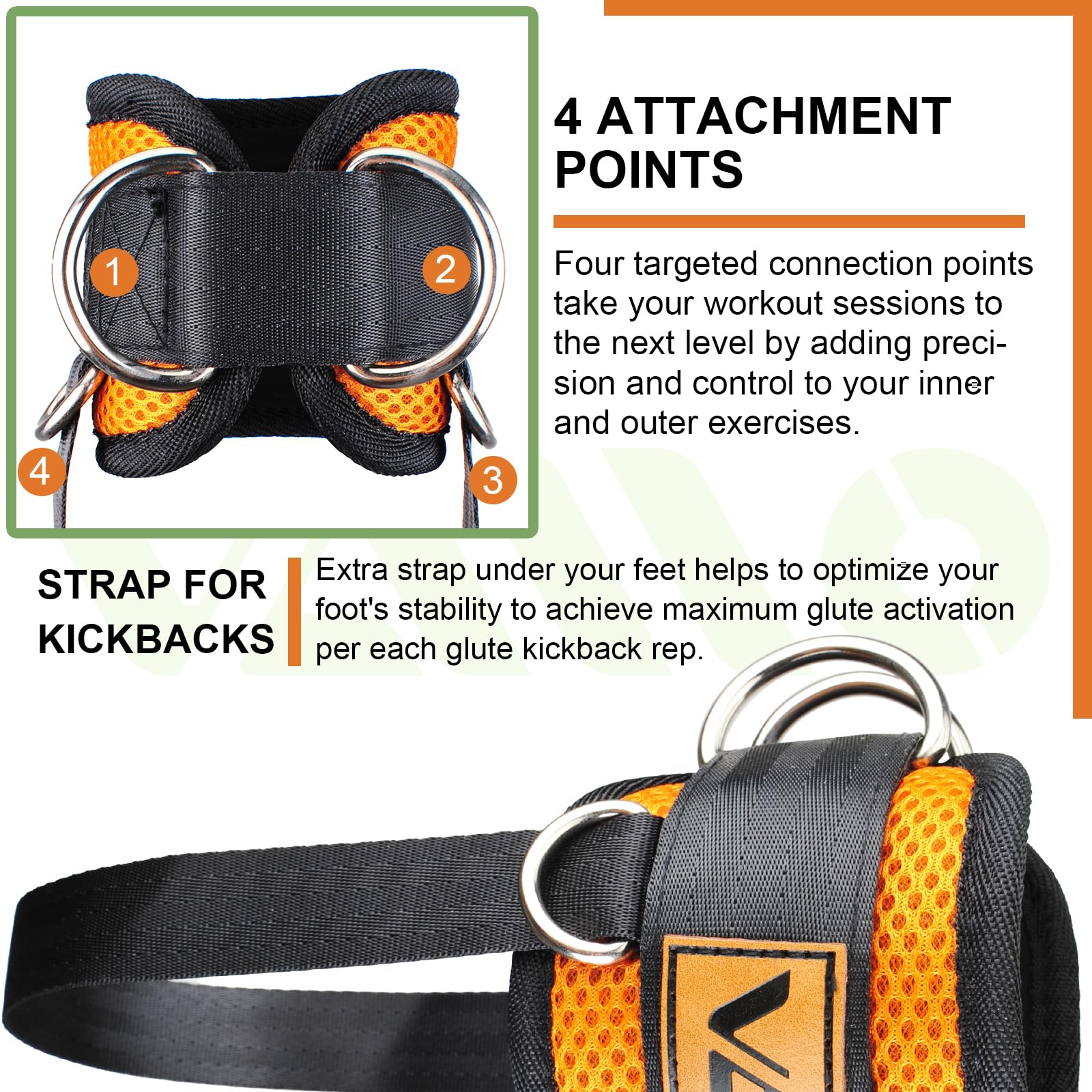 VAIIO Orange Ankle Straps for Cable Machines,Adjustable Comfort fit Neoprene, Reinforce Double D-Ring - Premium Ankle Cuffs to Improve Abdominal Muscles, Lift The Butts, Tone The Legs for Men & Women