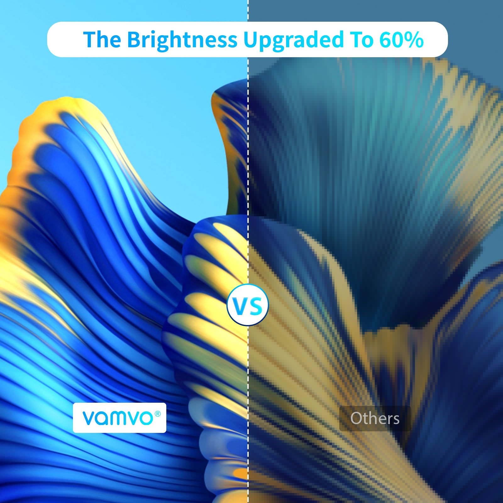 - Portable and Lightweight : This Vamvo projector is small and lightweght with the size of 6.8'*5.35'*2.9', only weighs 1.45 lbs, making it very portable to take with you. You can easily pack it in your bag when you are on the go with no pressure, and set it up quickly for a movie night.