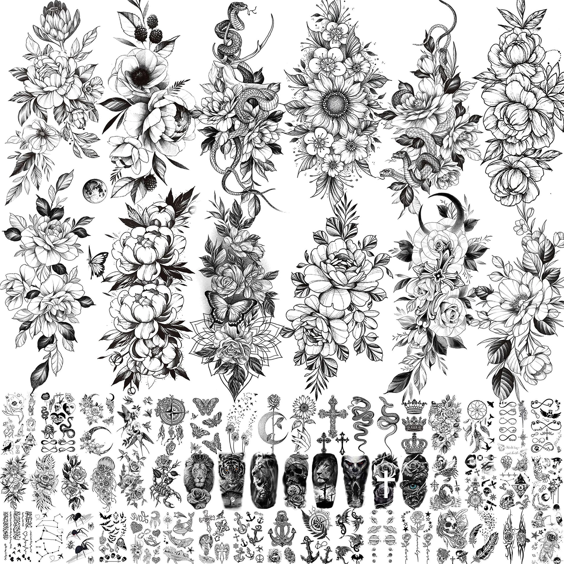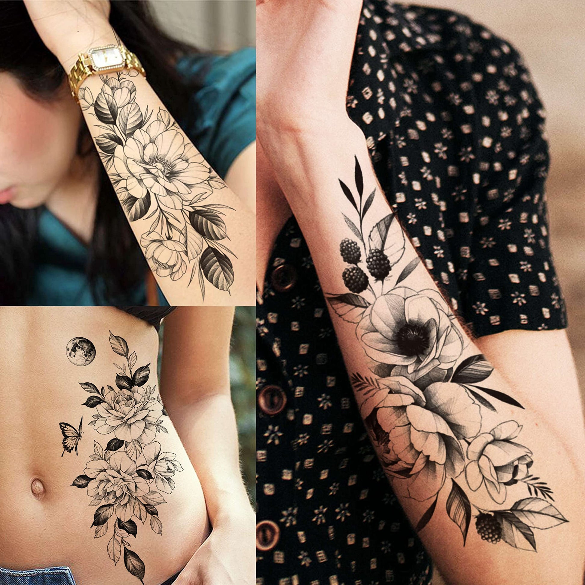 - 💕【Size】--12 Sheets Size 19x9cm 7.4'x3.5' Temporary Tattoos For Girls Adults An 49 Sheets Small Tattoo For Kids Girls Daughter Size 10x6cm 3.9'x2.5' 【long Lasting Tattoos】 Waterproof And Lasts Long Body From 3-5 Days. Realistic Temporary Tattoos For Women Sexy Flower Rose Peony Sketch Floral Blooming Blossom Leaf Branch Plants Summer Style.