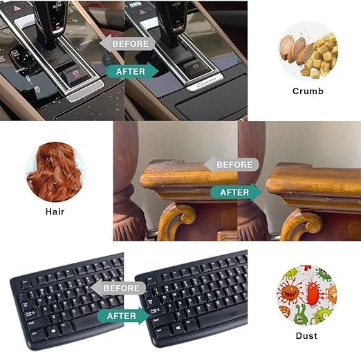 - [SIMPLE USAGE] Using this car vent cleaner is easy. Just gently press it on the dusty surface and slowly pull it off. If you push it into small spaces, it'll pick up dirt and come back out. You can do the same with the keyboard cleaner on your keyboard to get rid of dust.