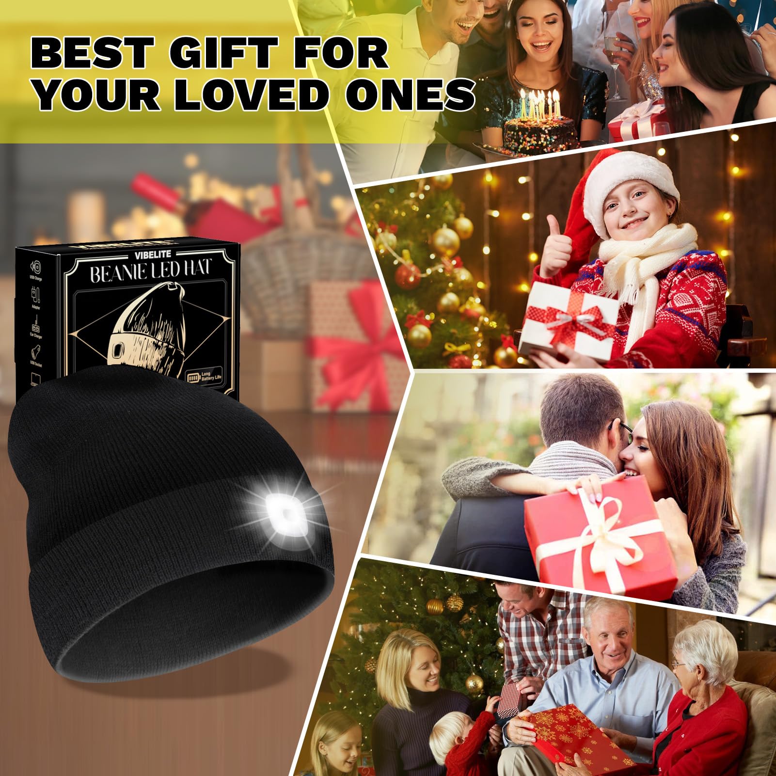 VIBELITE LED Beanie Hat with Light, USB Rechargeable LED Headlamp, Gifts for Christmas, Stocking Stuffers for Men Him Husband Boyfriend Dad Father, Black