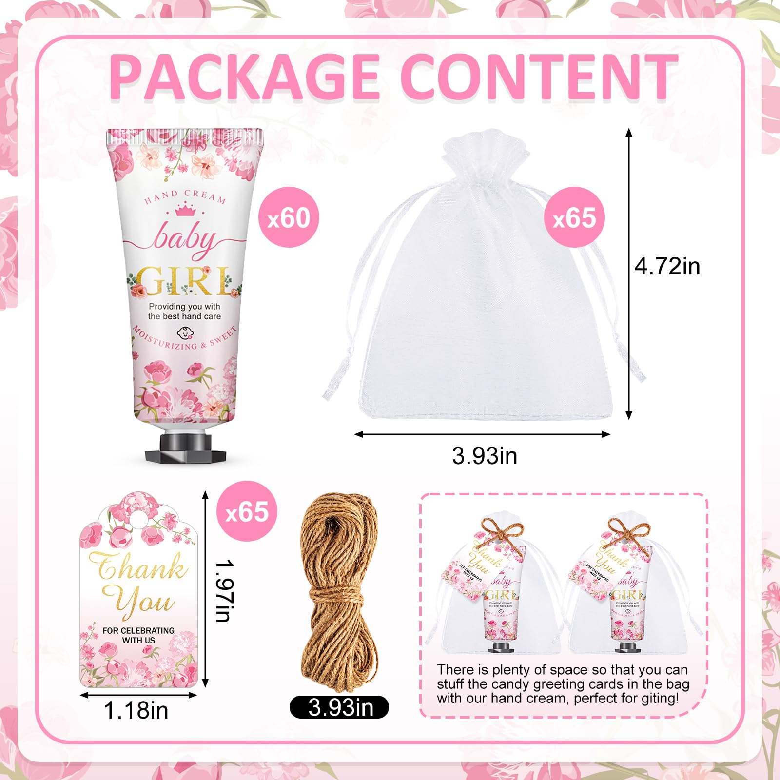 - 【Unique Design】This hand cream features a design of pink flowers and is printed with the golden copy of “Baby Girl”, which perfectly fits the theme of a baby shower party and enhances the joyful atmosphere of the party. It represents the cherry blossom fragrance welcoming the arrival of new life and is an ideal companion gift for your baby gift party.