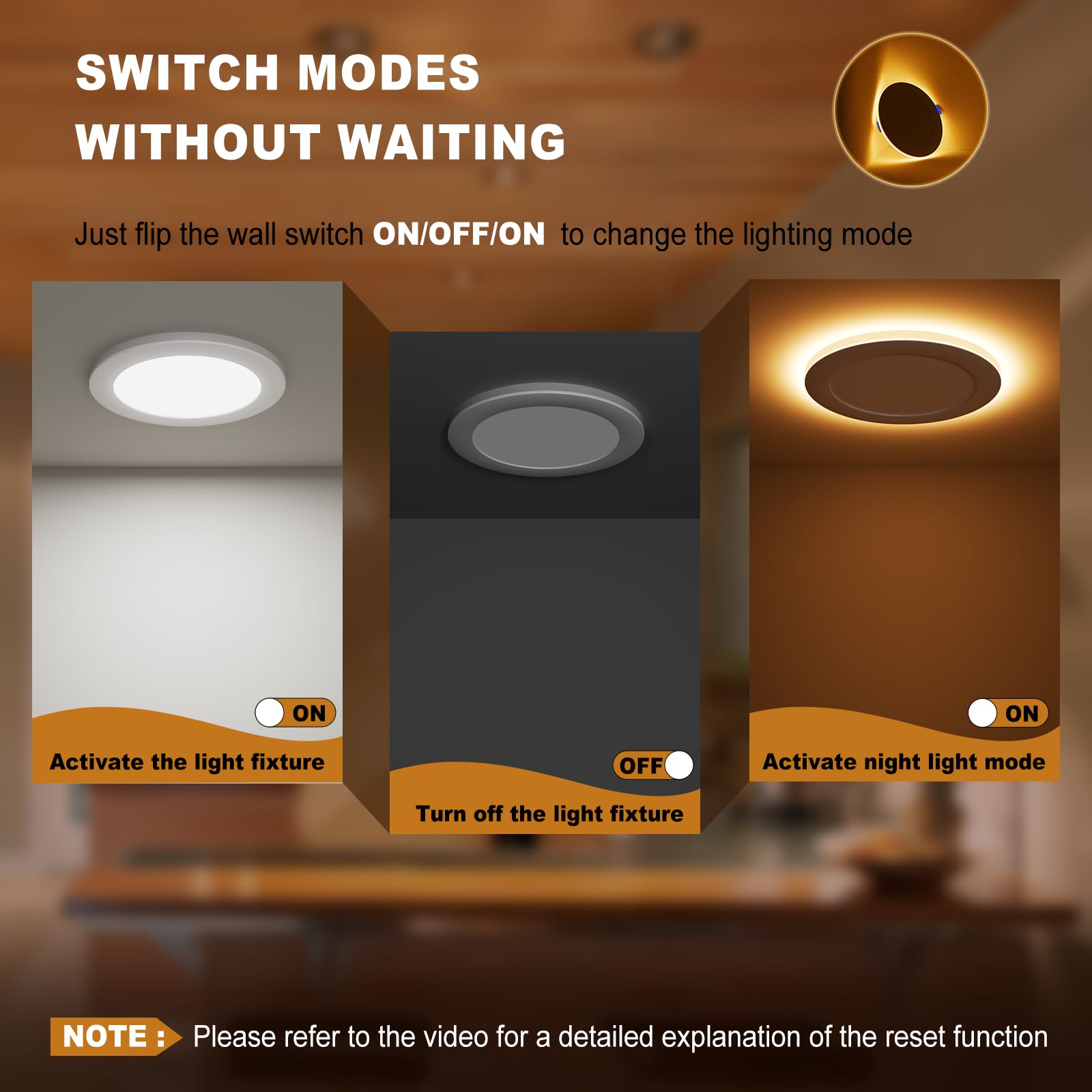 - 【Synchronization Reset Function】 All of our led recessed lighting with night light have synchronization reset function, every time when you turn on the downlight, it will always been downlight mode. Sometimes the lights get out of sync after installation. Please after turning off the light for 7 seconds and back on, then the synchronization will be done.
