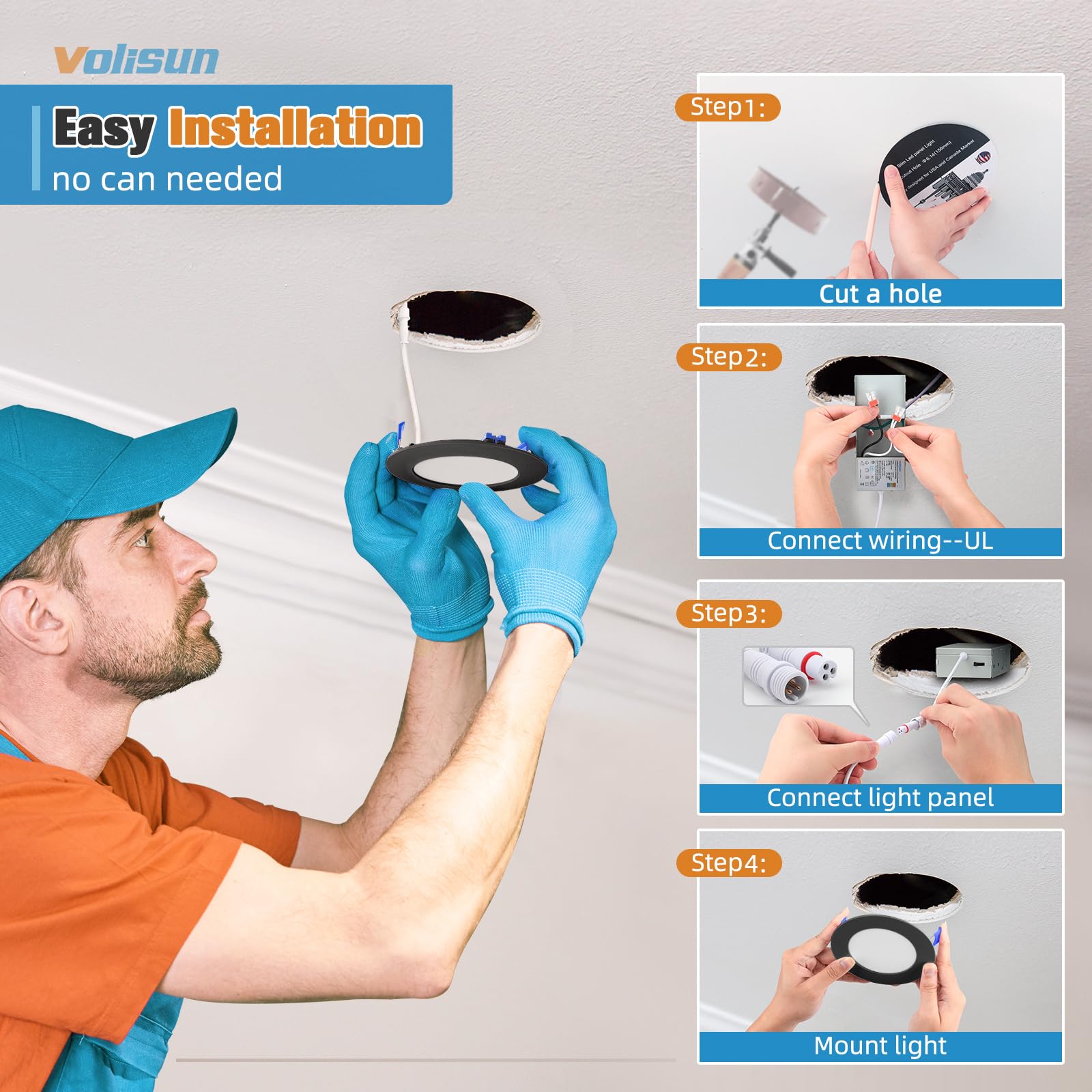- 【Trustworthy】 The recessed ceiling light 6 inch is IC rated,meaning the junction box is thermally protected. ETL/UL Certificated, the whole Volisun's recessed light fixtures is certified by ETL of a high standard , wire terminal is UL-certified.