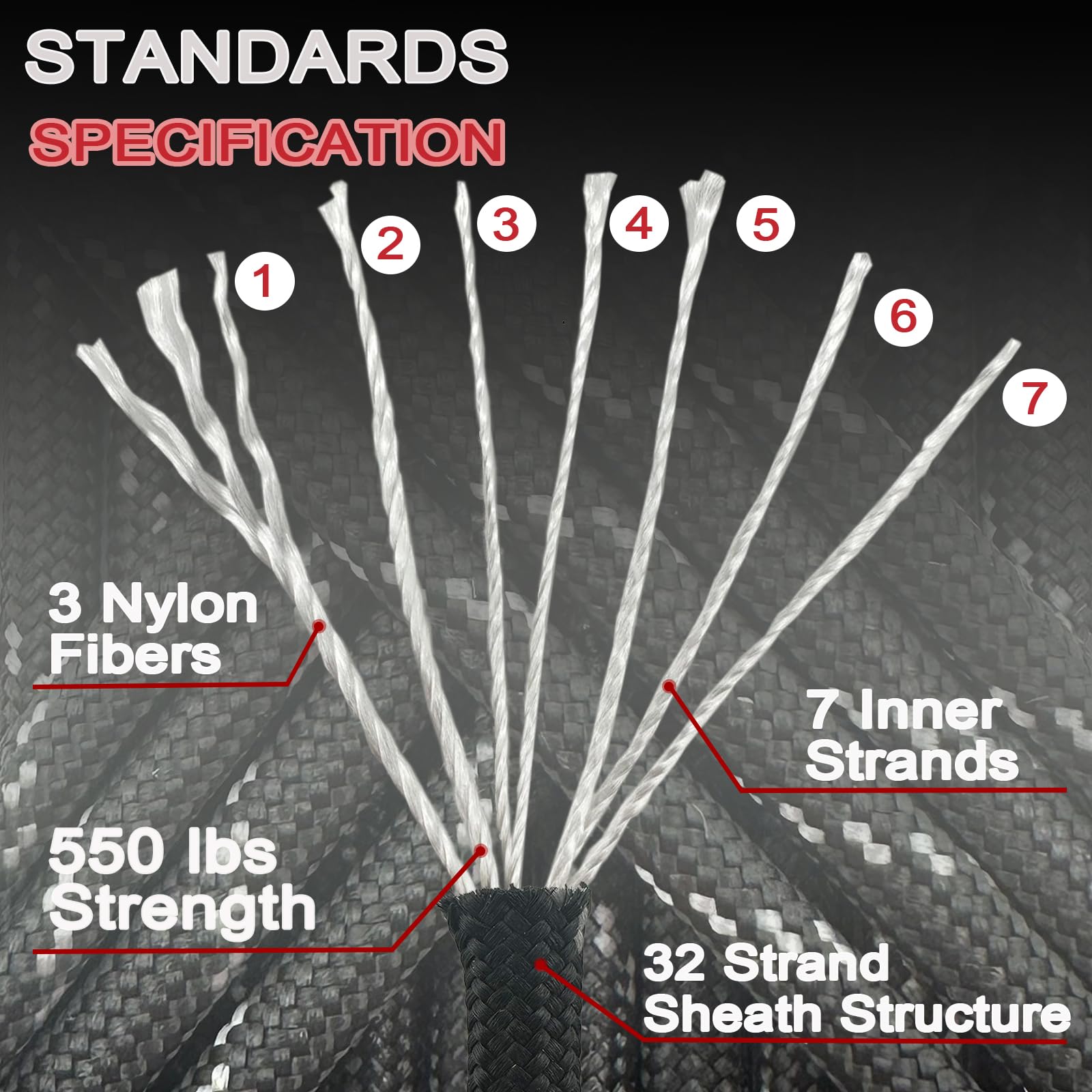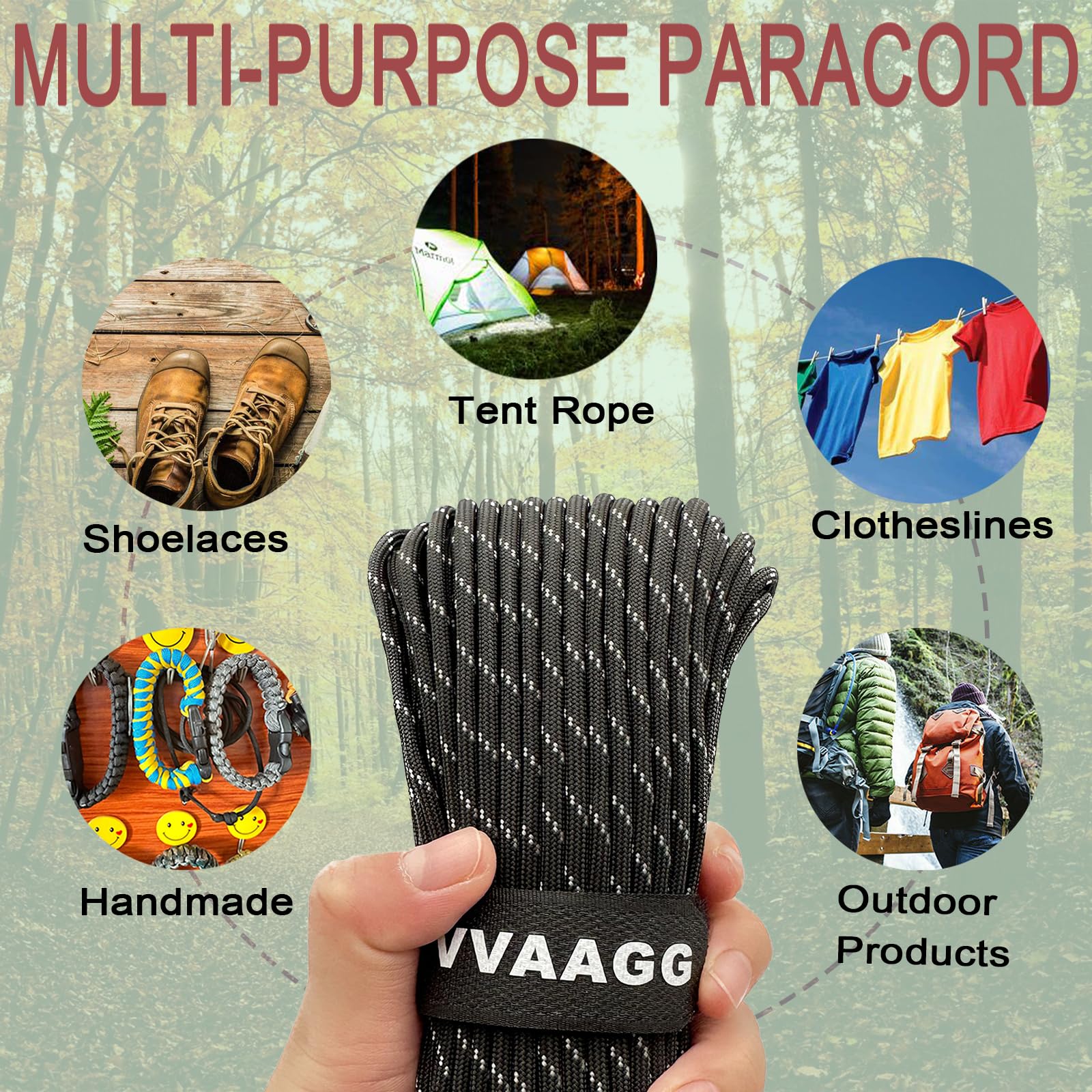 - Made of 7 strands of core weave, this VVAAGG Black Paracord Rope is a strong and sturdy rope that can handle various outdoor activities, from camping to hunting, to military missions and emergency rescue.