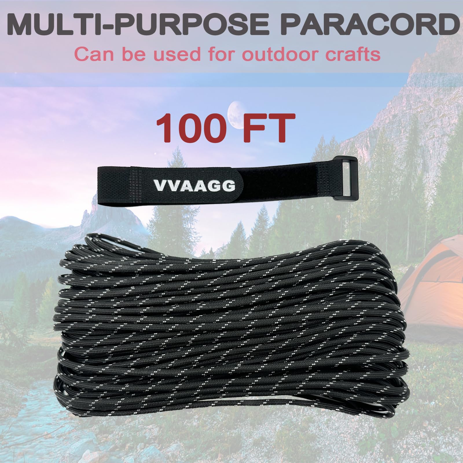 VVAAGG 550 Paracord 100FT 4mm Durable Camping Rope, Tent Rope, Clothsline Rope, Marine Weatherproof Rope, Nylon Parachute Cord Rope (Black with White)