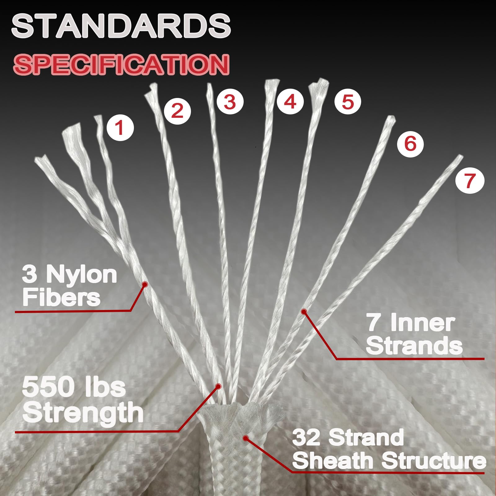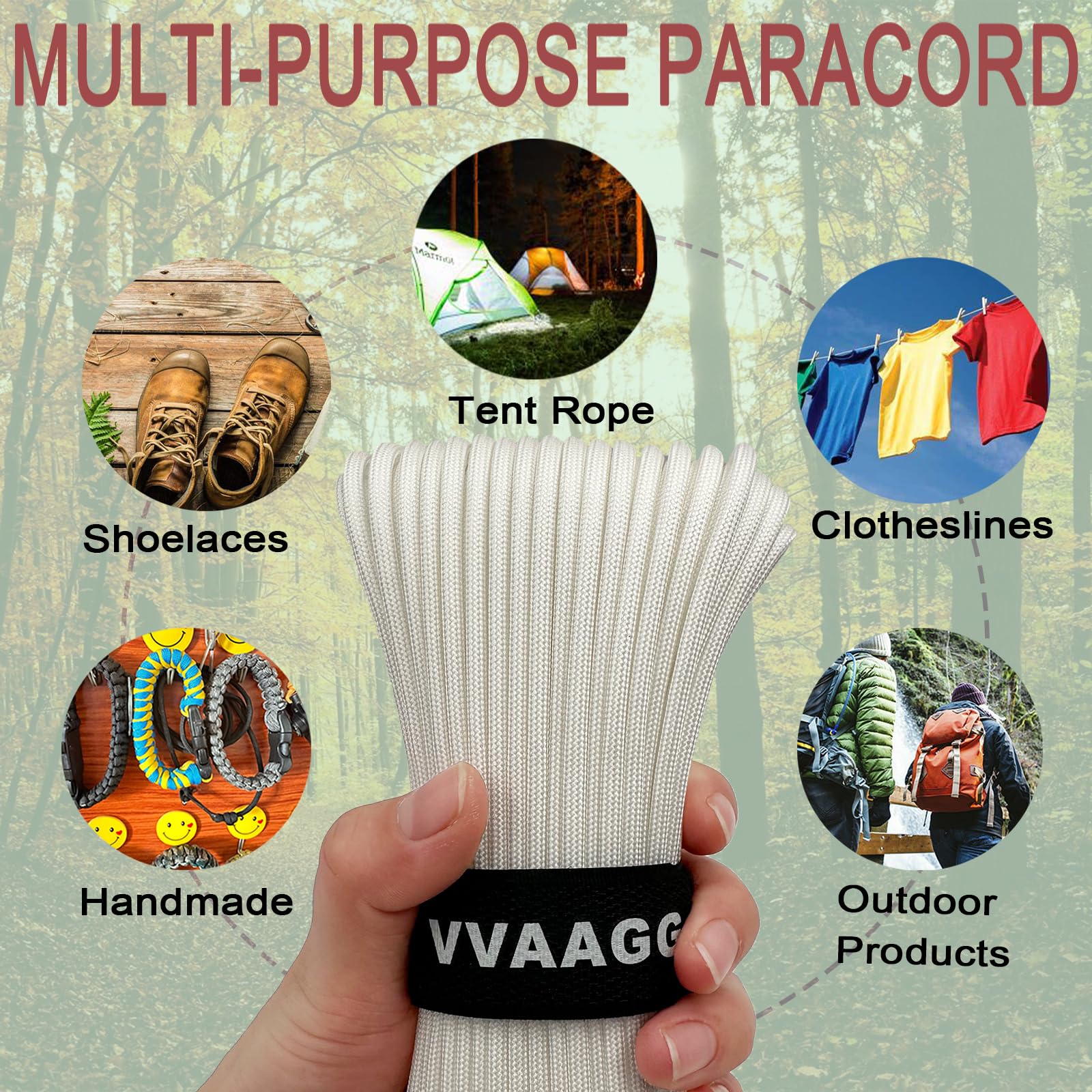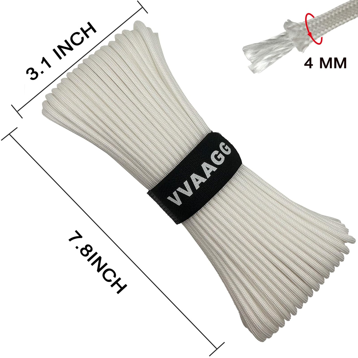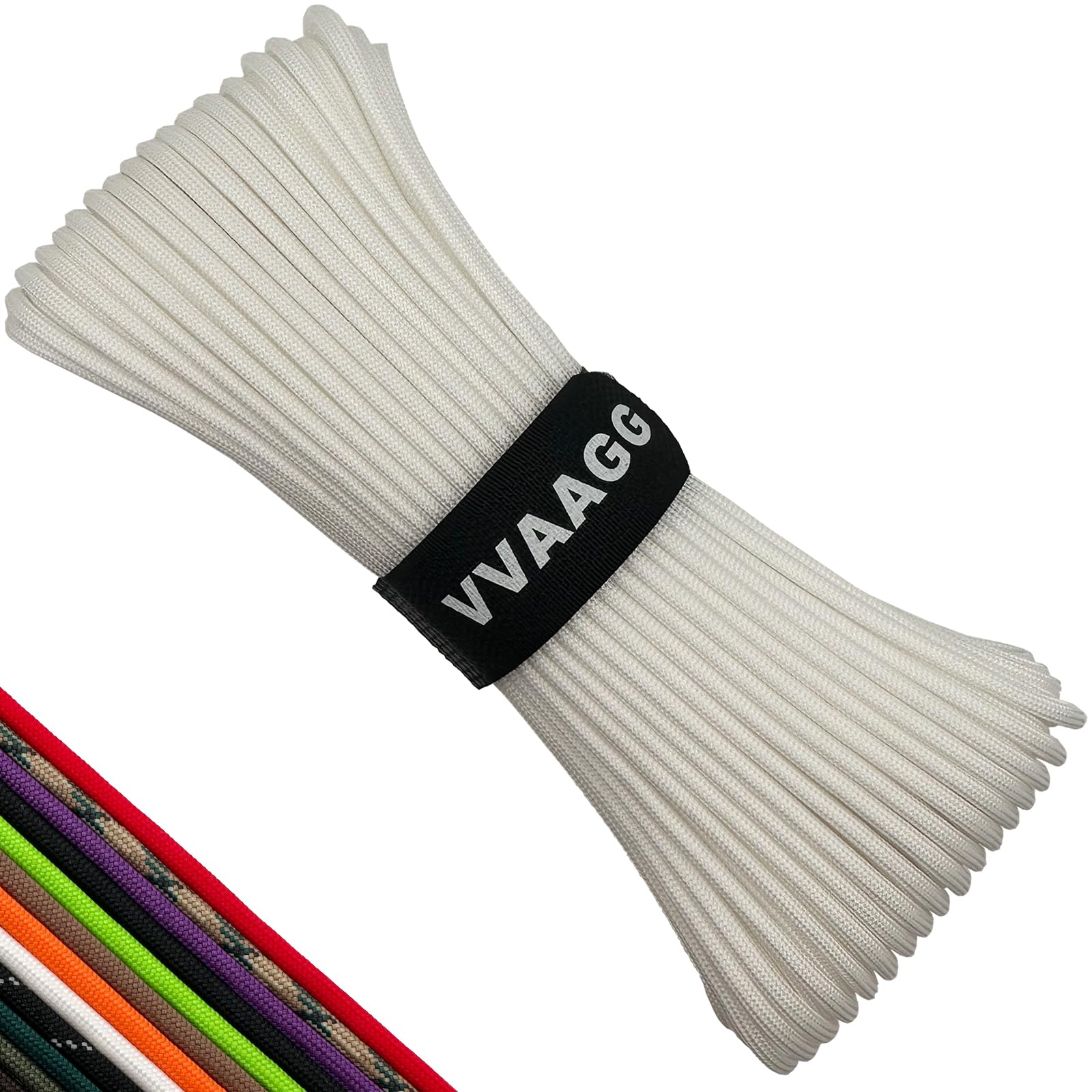 - Made of 7 strands of core weave, this VVAAGG White Paracord Rope is a sturdy and strong rope that can handle various outdoor activities, from camping to hunting, to military missions and emergency rescue.