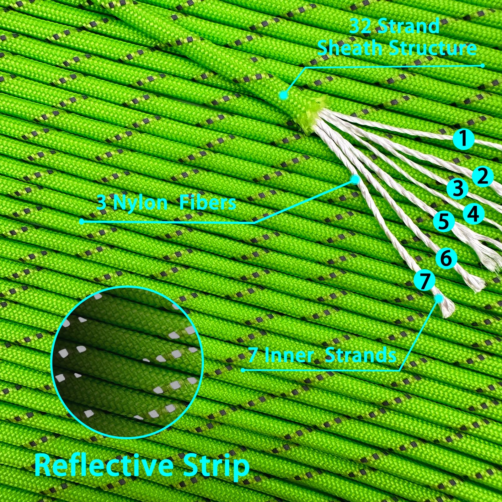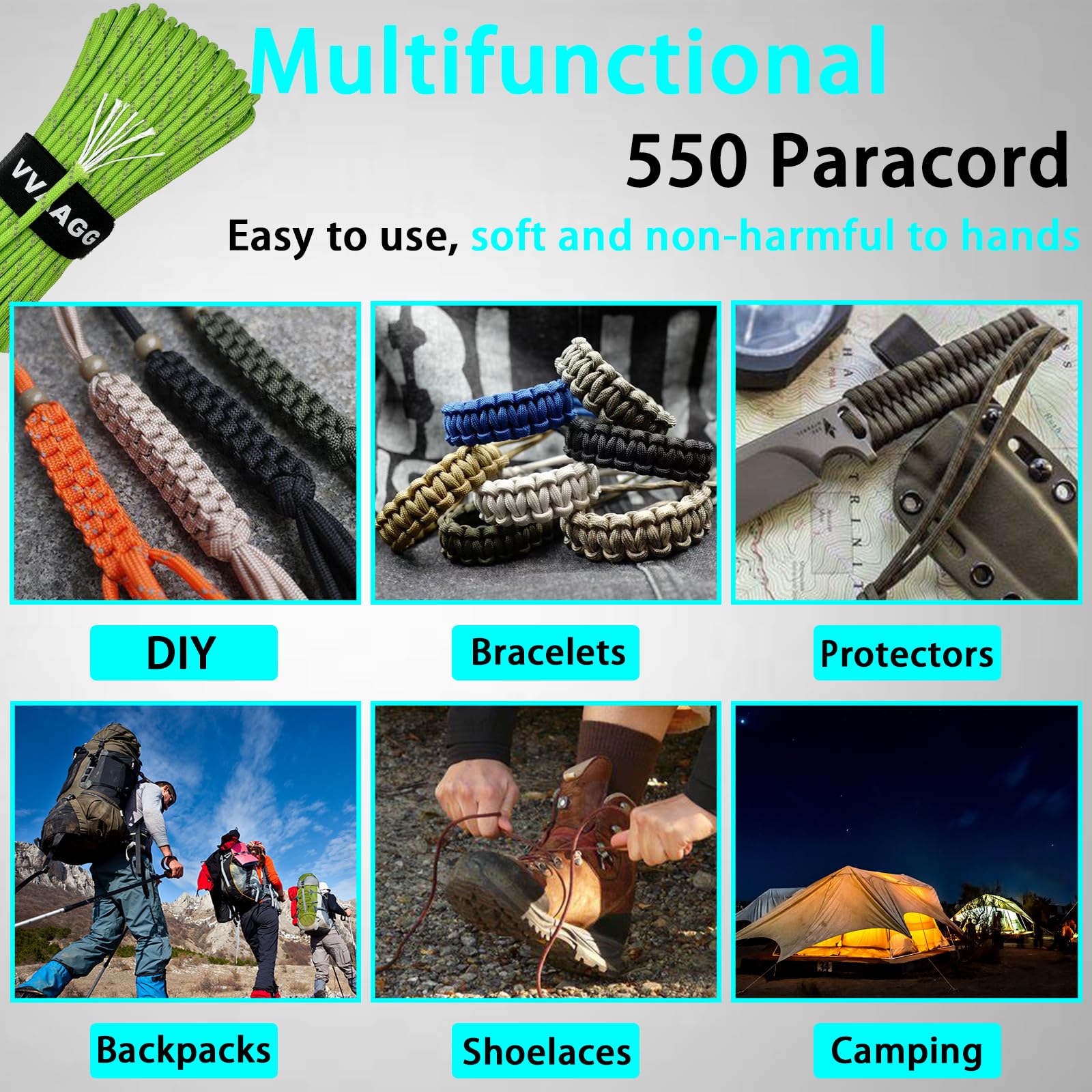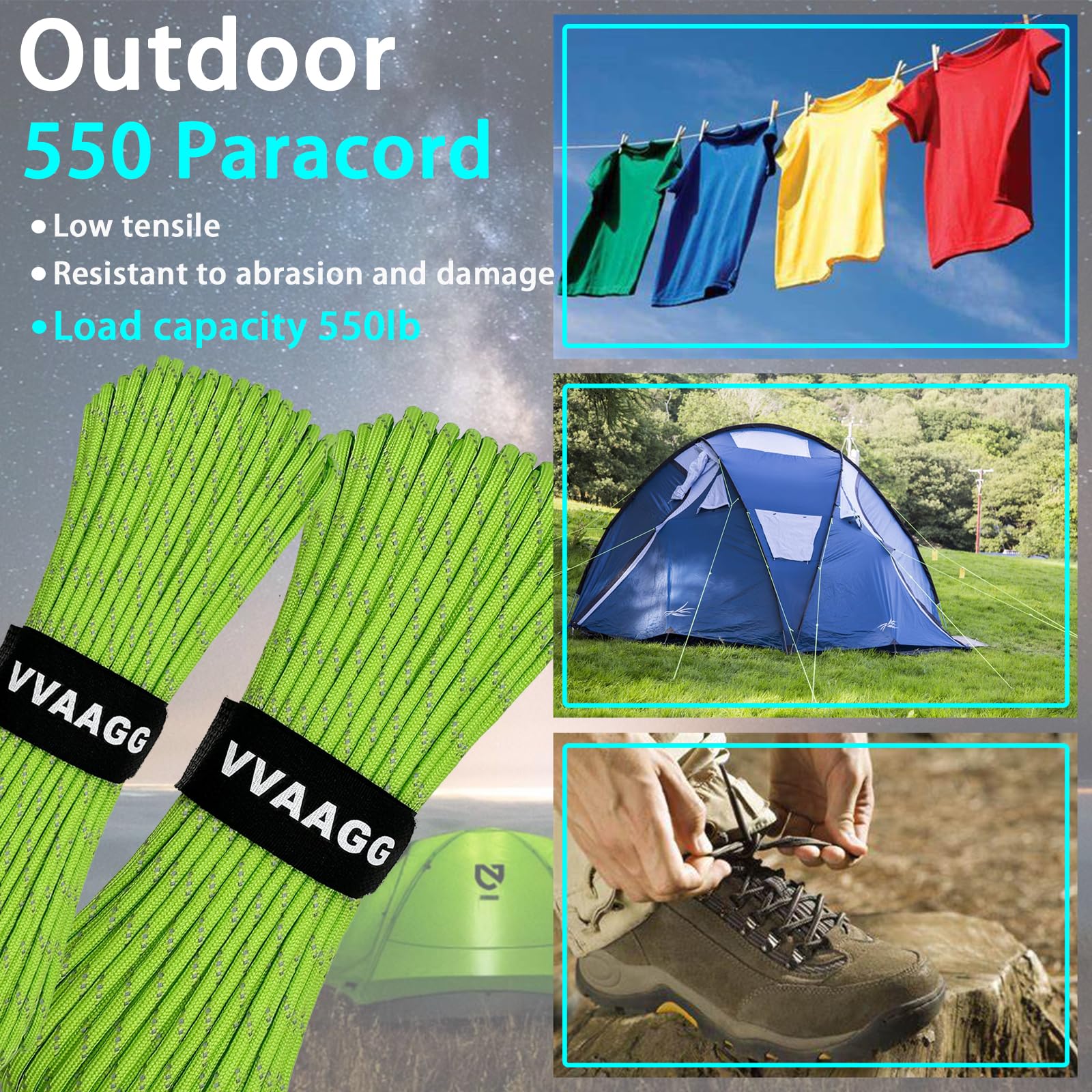- Made of 7 strands of core weave, this VVAAGG Neon Green Paracord Rope is a strong and sturdy rope that can handle various outdoor activities, from camping to hunting, to military missions and emergency rescue.