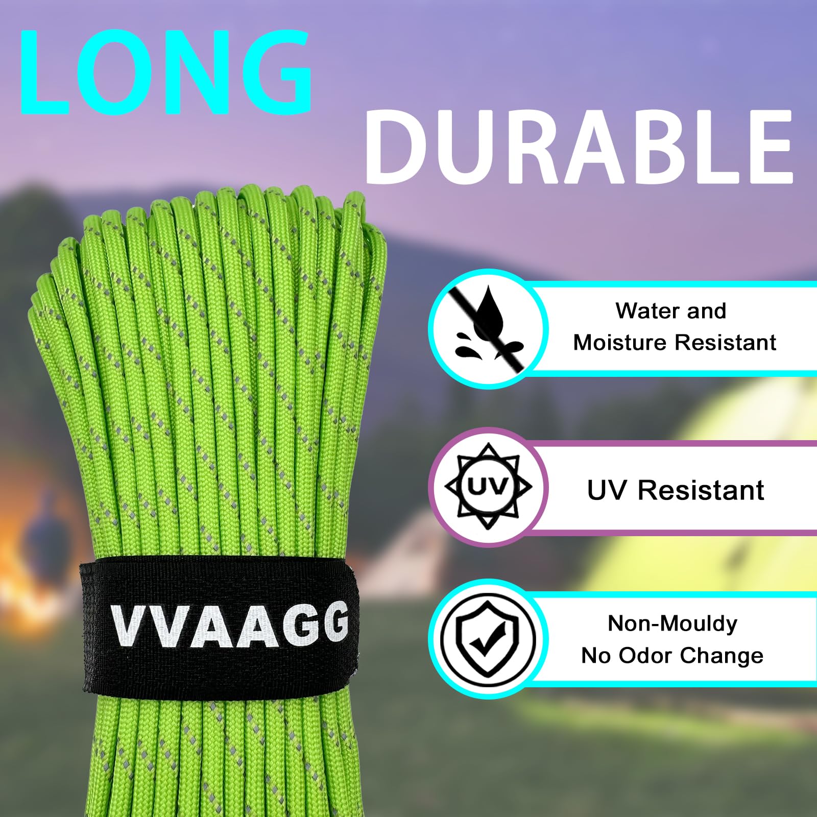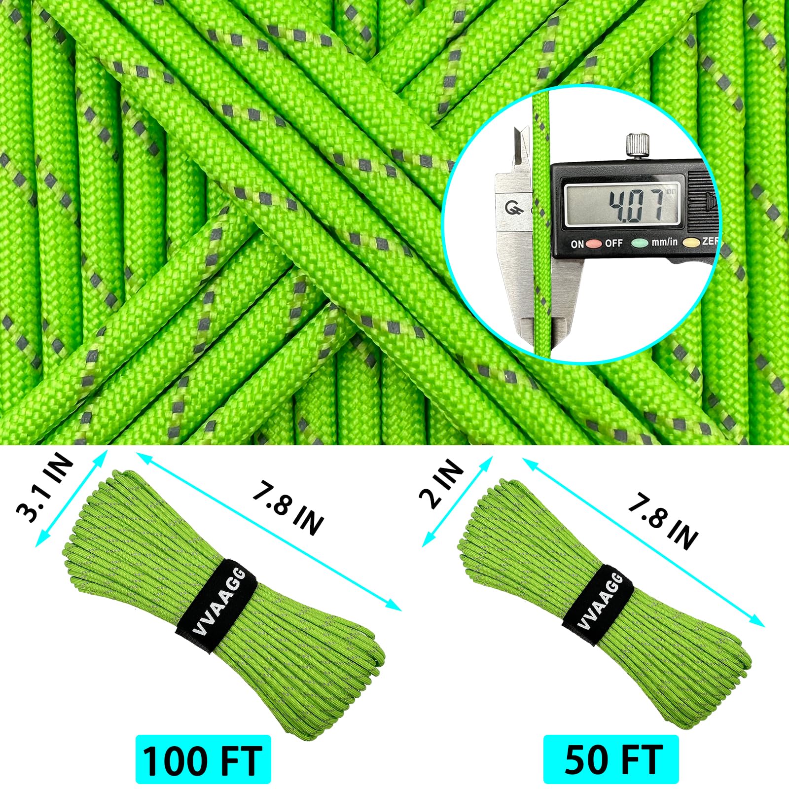 VVAAGG Reflective Paracord Rope 100FT, 7 Strand Nylon para Cord Lanyard Utility 550 Parachute Cord, 4mm Thin Tent Rope for Outdoor Camping Hiking (Neon Green)