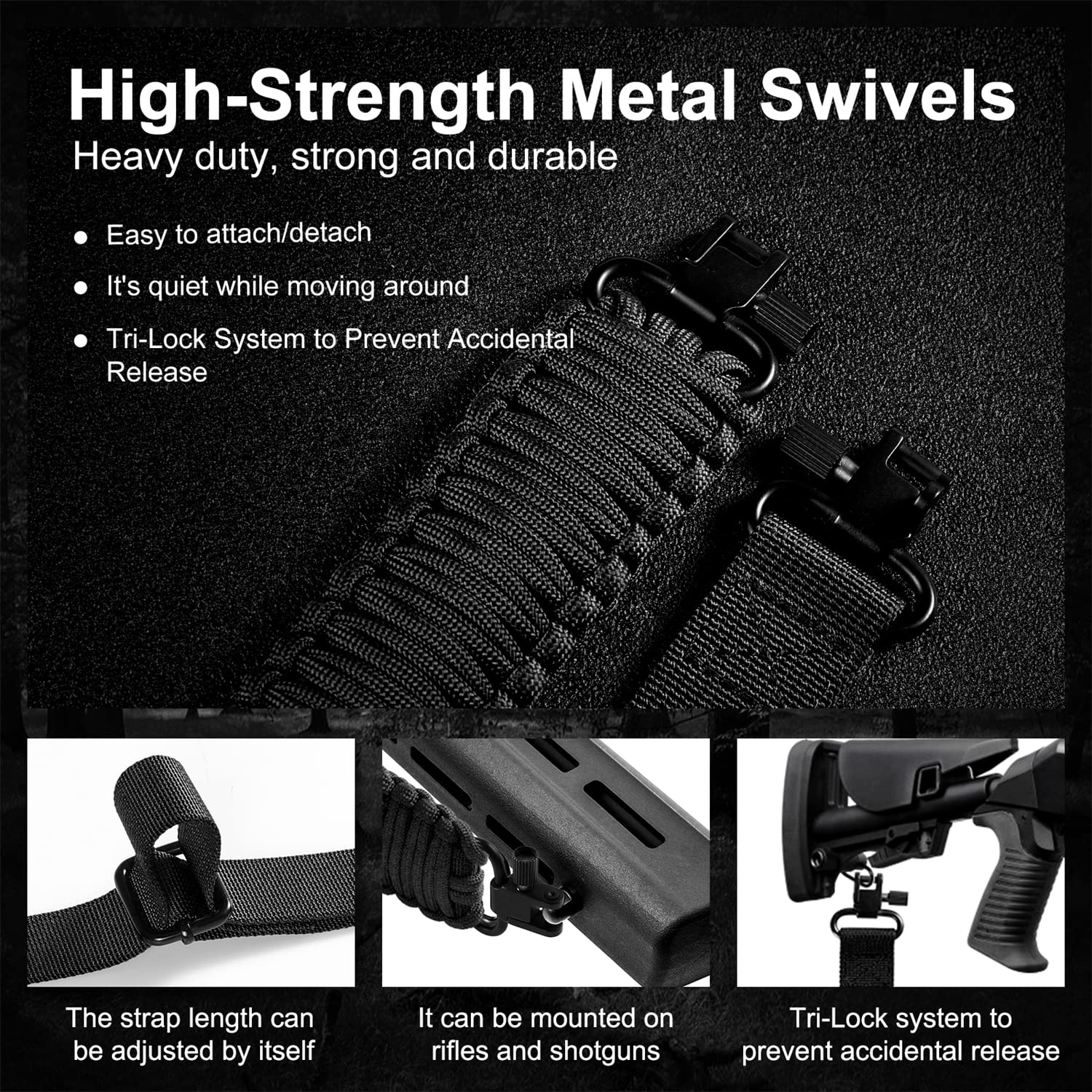 VVAAGG Two-Point Paracord Rifle Sling with Swivels, Non-Slip Paracord Sling Quick Adjustable Length Shotgun Strap for Hunting