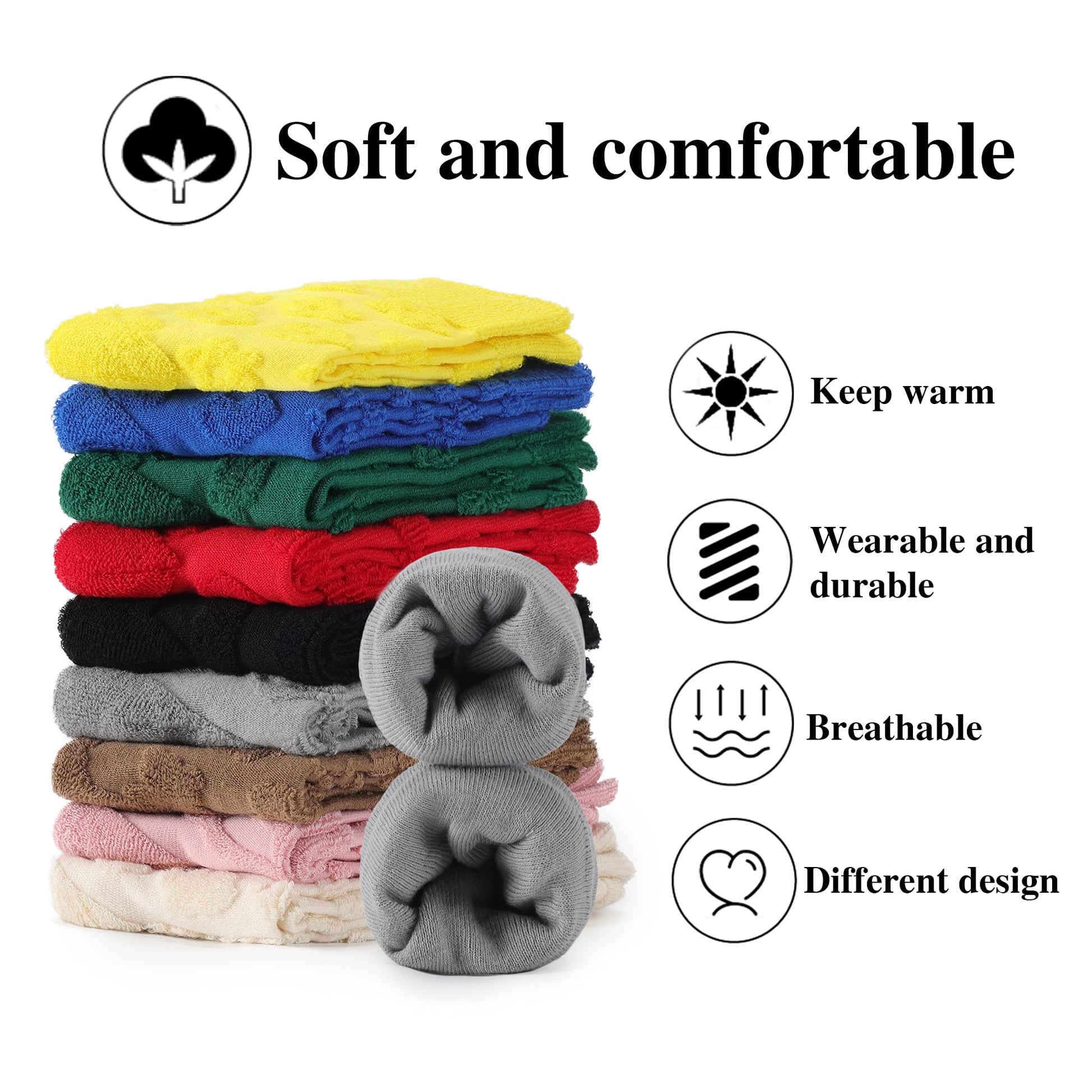 - Provides excellent warmth and thickness suitable for autumn and winter seasons, without being too bulky like plush socks, making them suitable for wearing outdoors.