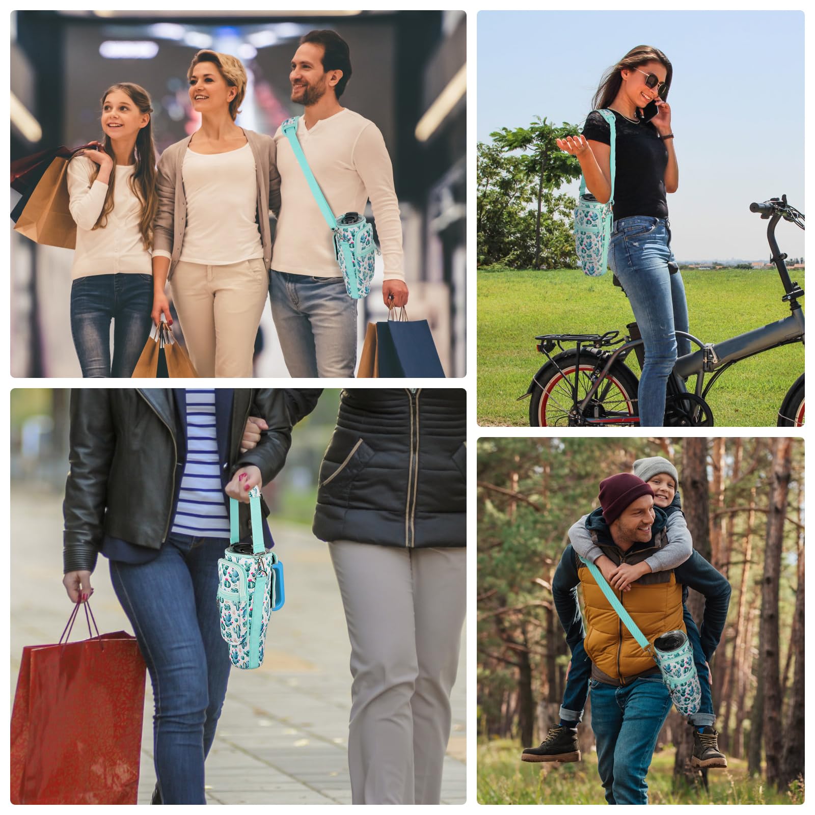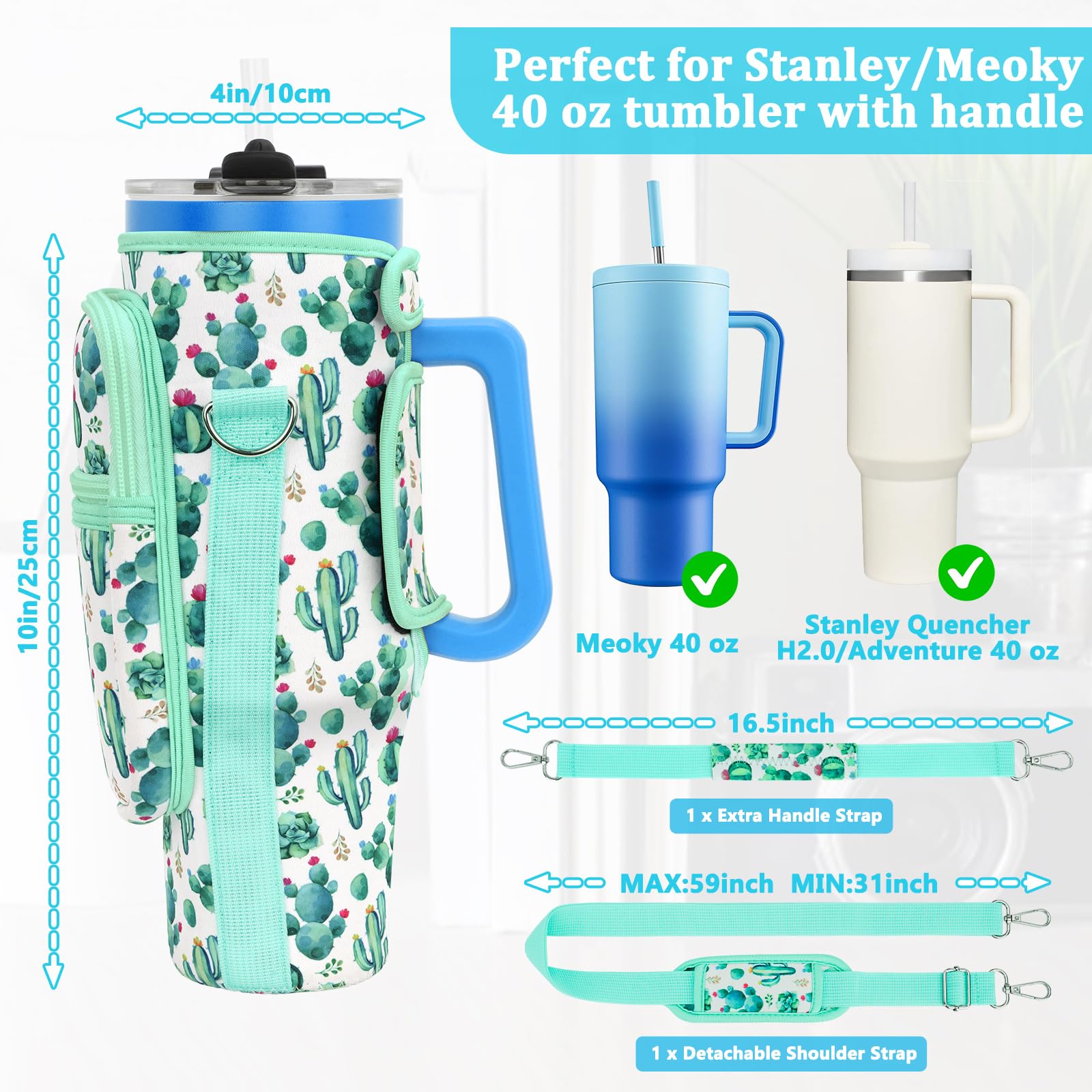 Details: Water Bottle Carrier Bag with Phone Pocket Compatible for Stanley/Meoky 40 oz Tumbler with Handle,Neoprene Water Bottle Holder Pouch with Adjustable Strap Compatible for Stanley Cup Accessories,Cactus Print