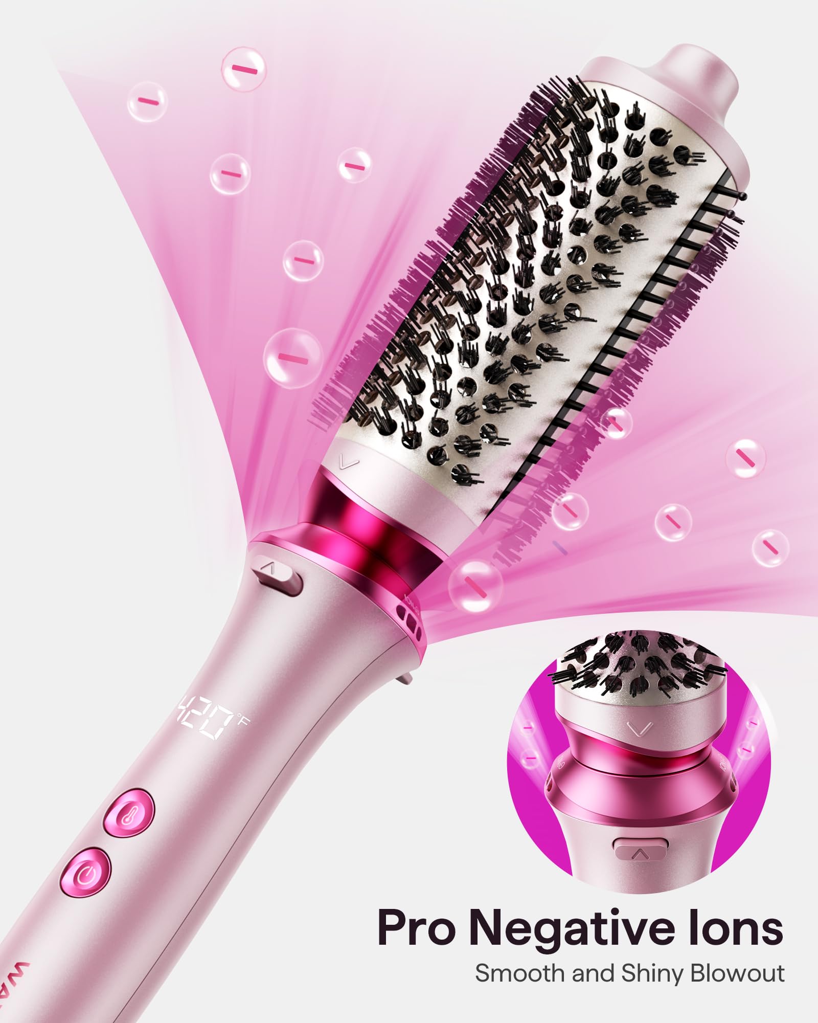 Wavytalk Thermal Brush, Wavytalk Heatwave Pro 1.75" Ionic Thermal Brush with Bilateral Ionic Outlet to Less Damage and One-Step Shiny Blowout Look for Long Hair, Pink