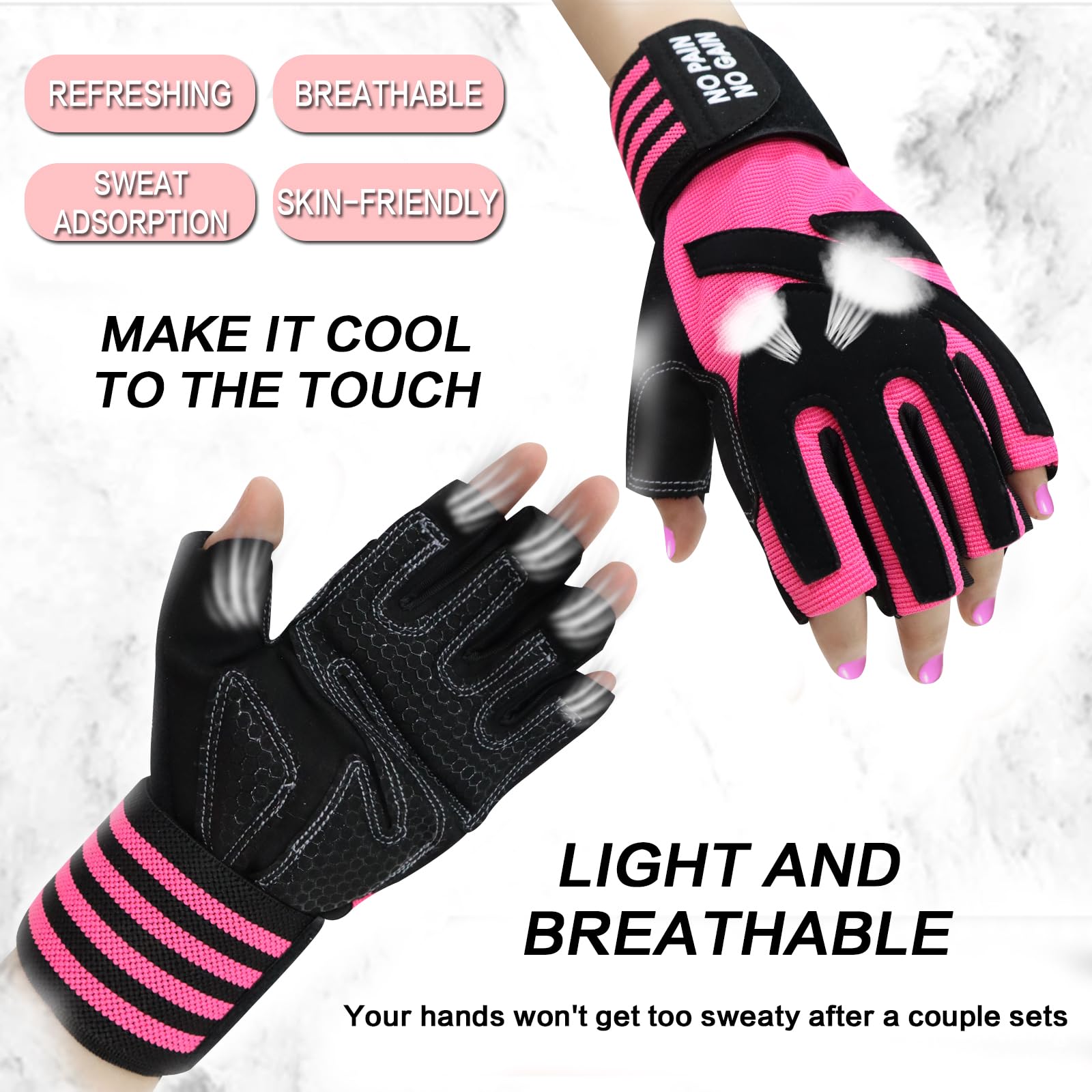 Weight Lifting Gloves for Women Gym Workout with Wrist Support,Padded Half Finger Gloves for Fitness Exercise (Pink, X-Small)