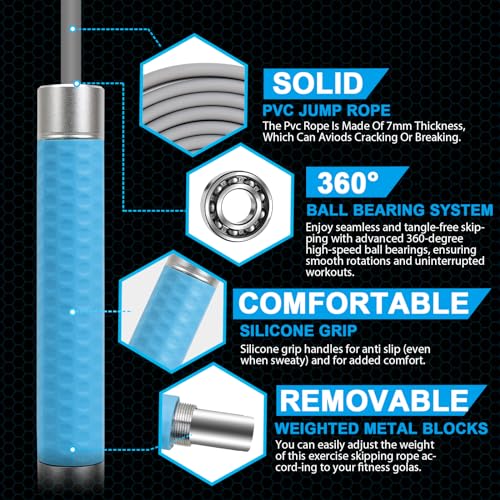 - Weighted Jump Rope for Men,Women,and kids (1LB): Take your workouts to new heights with our 1LB Weighted Jump Rope, Customize the weight with 2 removable metal blocks, adapting to your fitness goals. Perfect for beginners and advanced users alike, burn calories, and sculpt muscles in key areas. Elevate your exercise routine for more effective results! Our Weighted jump Ropes for Fitness is suitable for men and women, making it the best choice for your Endurance Training Cardio crossfit boxing Exercise.