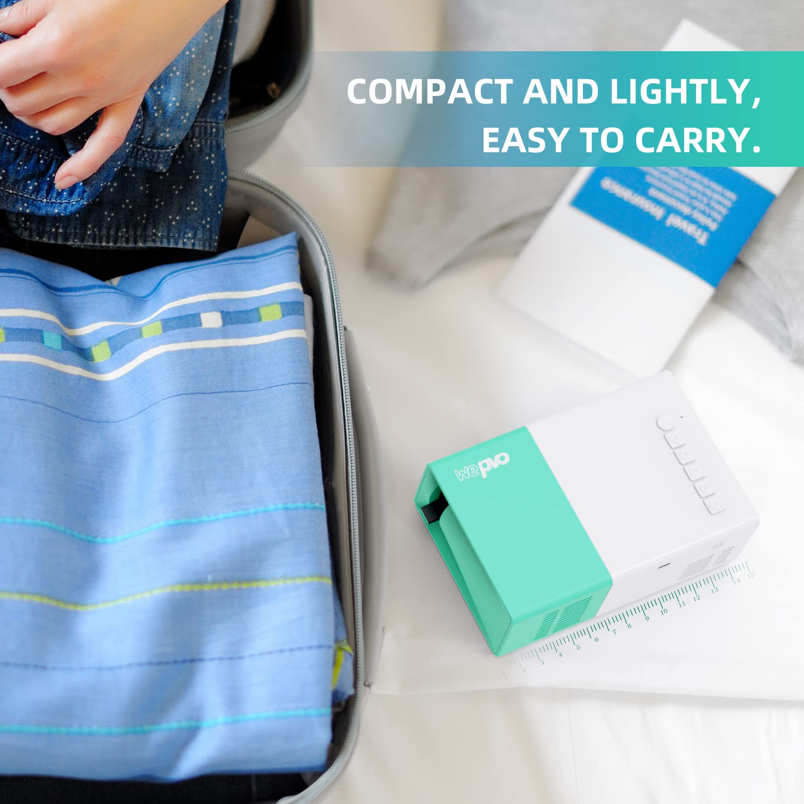 wepvo Projector Mini Portable Outdoor Movie Projectors, LED Pico Video Projector for Home Theater Film Projectors, Compatible with Smartphone/ Tablet/ Laptop/ TV Stick/ PS/ USB