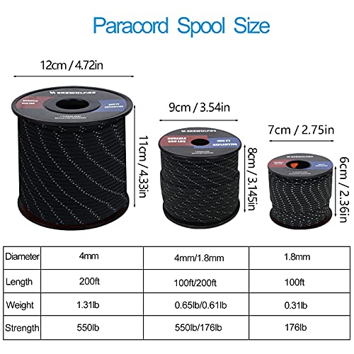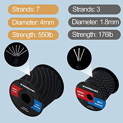 WEREWOLVES Reflective 550&176 lb Paracord - Nylon, Rope Roller,7&3 Strand Utility Parachute Cord for Camping Tent, Outdoor Packaging