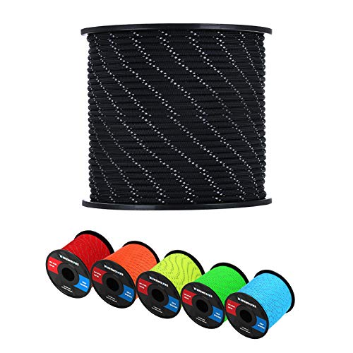 - High quality: The reflective paracord with a diameter of 4mm is 7 strands, the average pulling force exceeds 550 pounds, and the reflective paracord with a diameter of 1.8mm is 3 strands, the average pulling force exceeds 176 pounds. The reel made of polymer nylon plastic will make you use the parachute rope very simple and easy to carry and store.