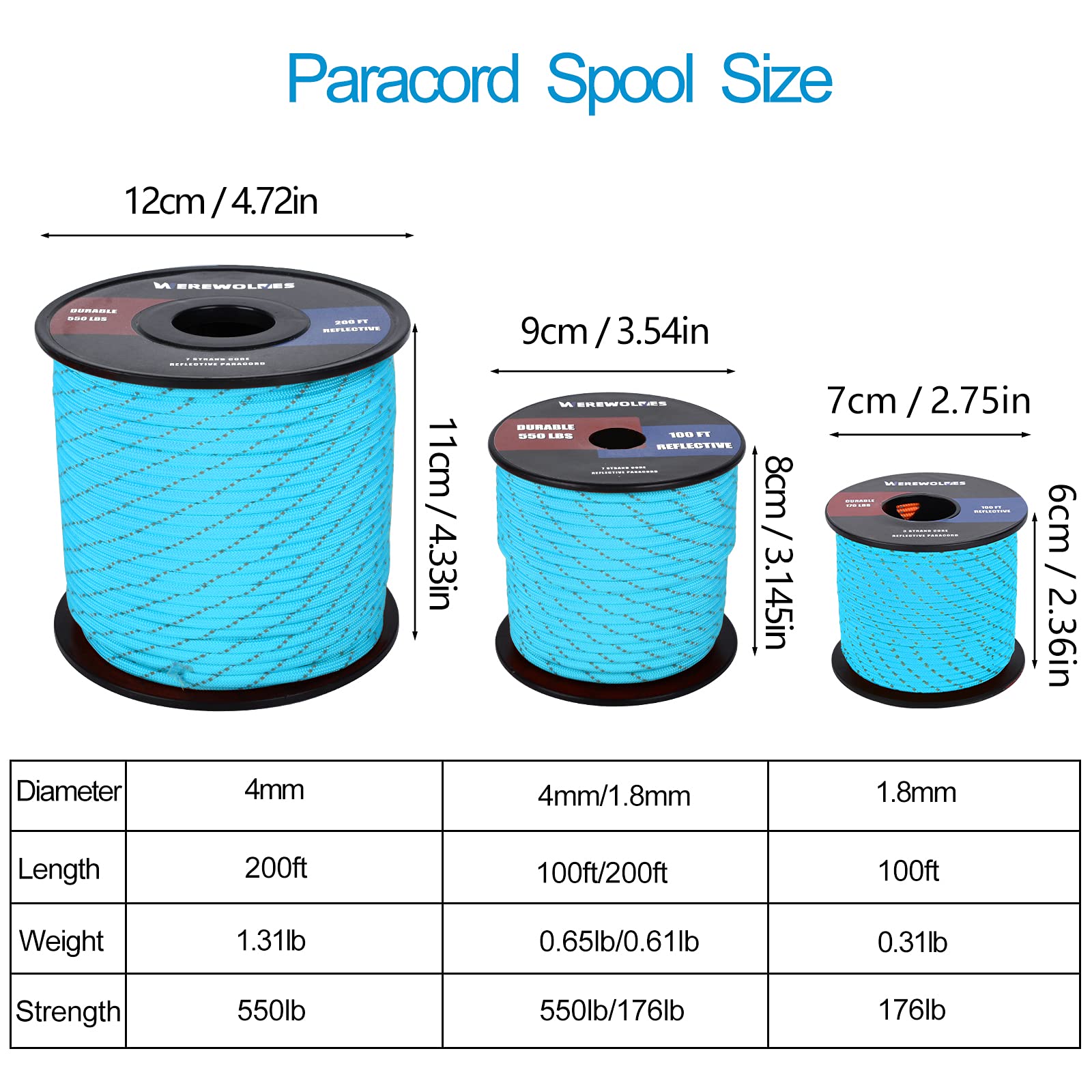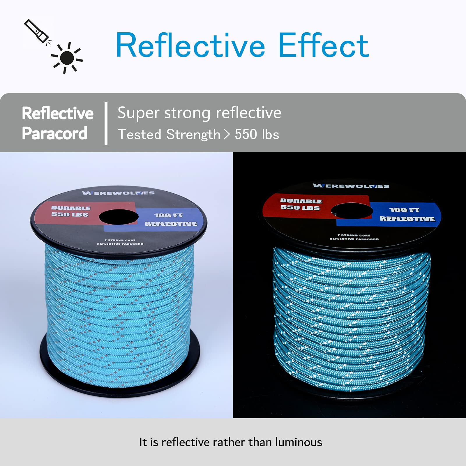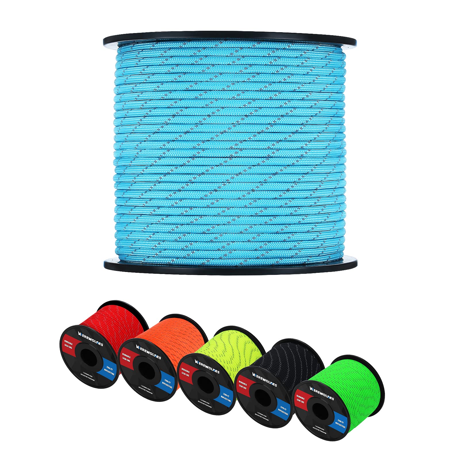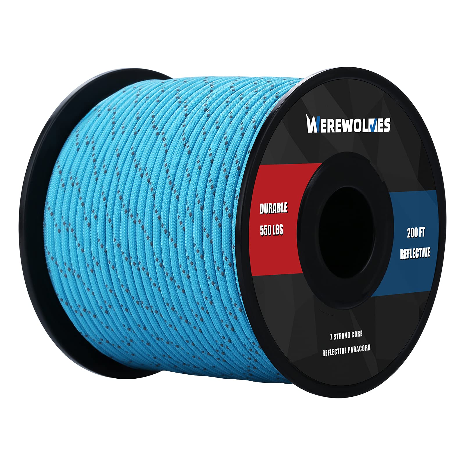WEREWOLVES Reflective 550&176 lb Paracord - Nylon, Rope Roller,7&3 Strand Utility Parachute Cord for Camping Tent, Outdoor Packaging